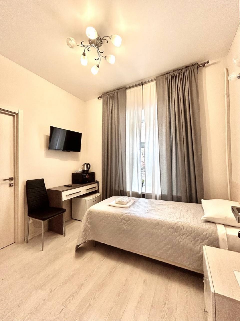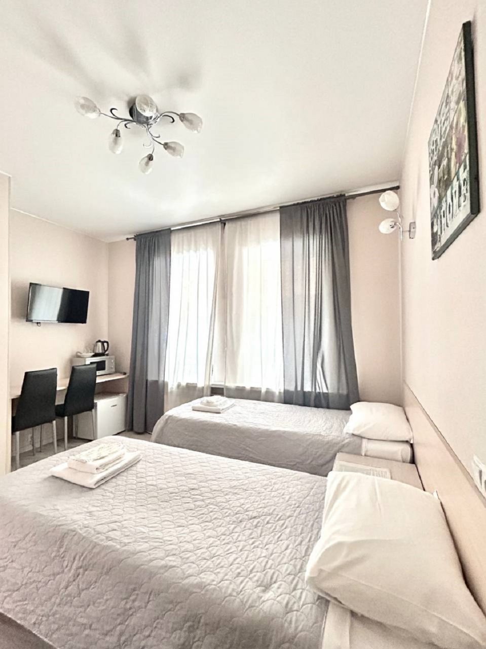 Для нас с сестрой это был лучший вариант для остановки. Приятный номер, все выполнено в светлых оттенках, ремонт хороший. Есть две кровати, что очень удобно, мы как раз так и хотели. Есть телевизор, вайфай, личная ванная. Хорошо, что в номере был чайник, удобно, с утра можно выпить чай или кофе. Нам здесь понравилось!