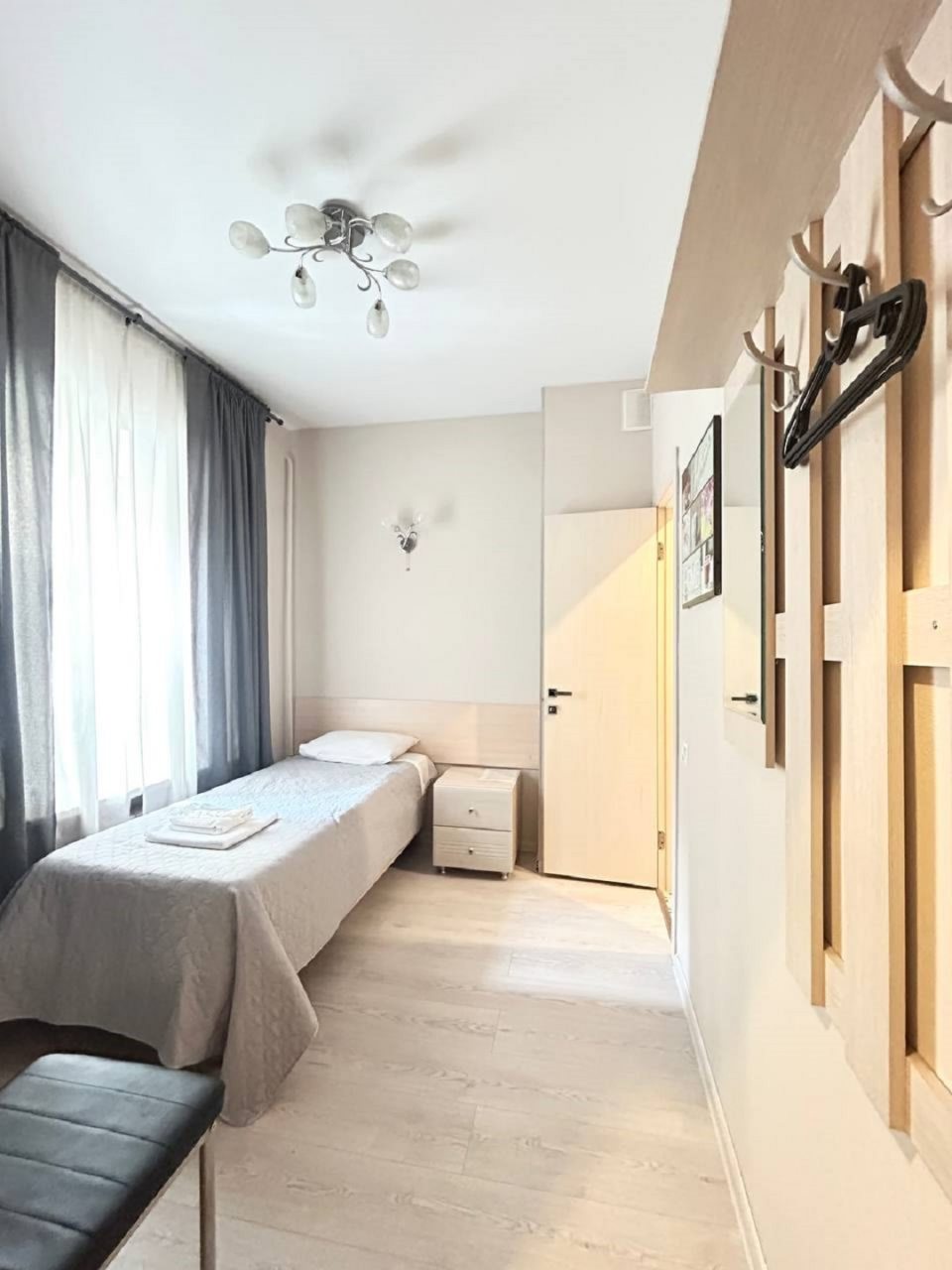 Для выбора гостей доступно несколько категорий номеров. При этом в каждом из них вы обнаружите мягкую односпальную кровать, натуральное постельное белье из 100% хлопка, затемненные шторы для большего комфорта, телевизор для отдыха и письменный стол для работы. Ванная комната укомплектована стандартным набором сантехники, полотенецами и гигиеническими средствами.