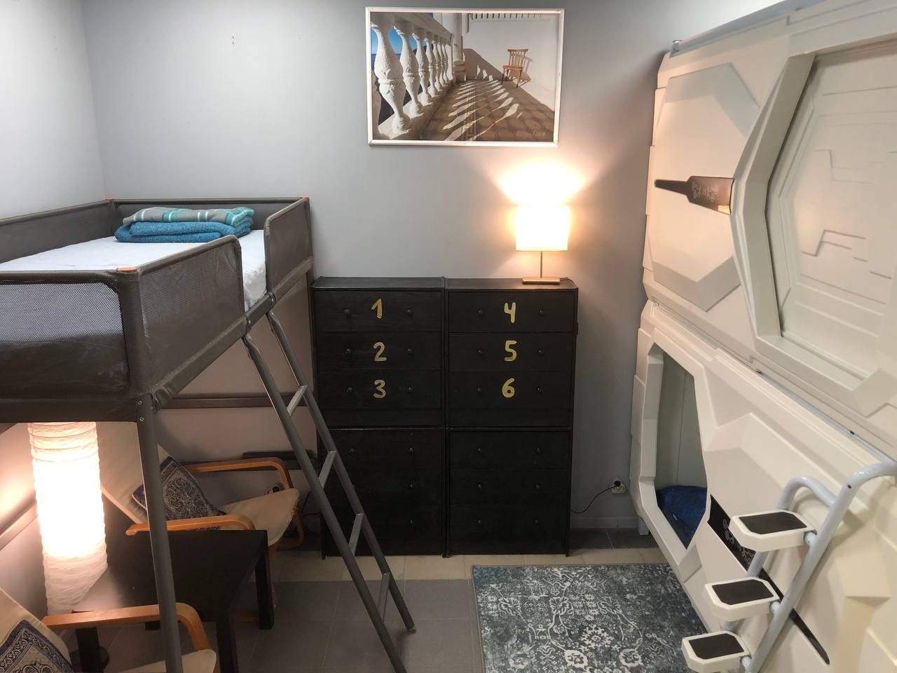 Жили на Ломоносова 20. кроме того, что не сразу нашли, плохого сказать больше нельзя. Чисто, тихо, удобно! Администратор постоянно что-то омет, стирает, туалеты чистота идеальная, душа два, туалета два. Ни разу никуда в очередь не стояли, На кухне сть все необходимое. Комната была самая дальняя, маленькая, но уютная. Диван и кровать на втором ярусе. Матрас удобный, постельное мягкое, спалось как дома!