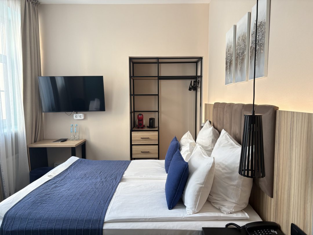 Чудесный отель, очень рекомендую! Останавливалась здесь на 3 дня в начале февраля, впервые. При заезде предложили комплимент - бокал шампанского или лимонад. Номер (стандарт с большой кроватью) не очень большой, но идеальный. Есть все, включая кофемашину, капсулы к ней, чайник, чай, сахар. Вода комплиментарная. Обслуживание прекрасное, на ресепшн девушки всегда помогают и вообще очень милые.