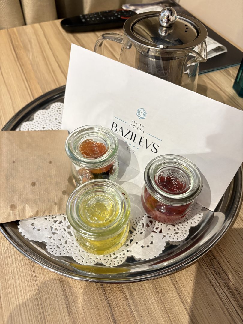 Было невероятно приятно, вернувшись вечером с мороза, обнаружить в номере комплимент - чайник чая, мед, варенье, печенье и сухофрукты.