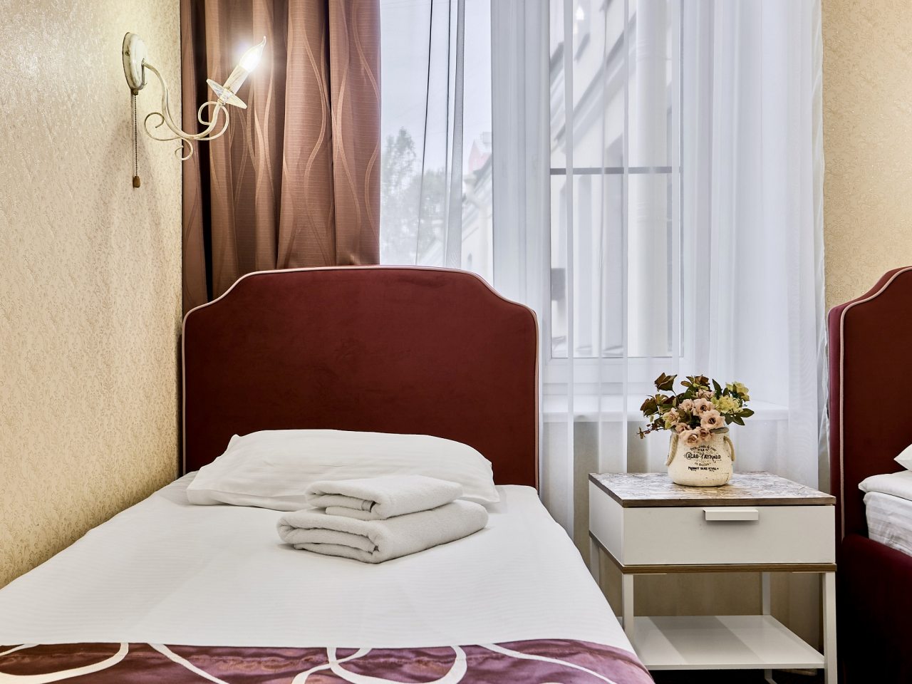 Отличный отель! Находится в жилом доме, по соседству с обычными квартирами и другими мини-отелями. Совсем недалеко от московского вокзала, около 10 мин пешком. Включен завтрак, хоть и не слишком разнообразный но сытный. В номере есть все что нужно. В коридоре тихо, можно нормально высыпаться. Так же в коридоре находится кухонная зона, чай, кофе, кулер с горячей и холодной водой, посуда: кружки, тарелки, приборы так же в коридоре есть гладильная доска. Отель красиво украшен к новому году.