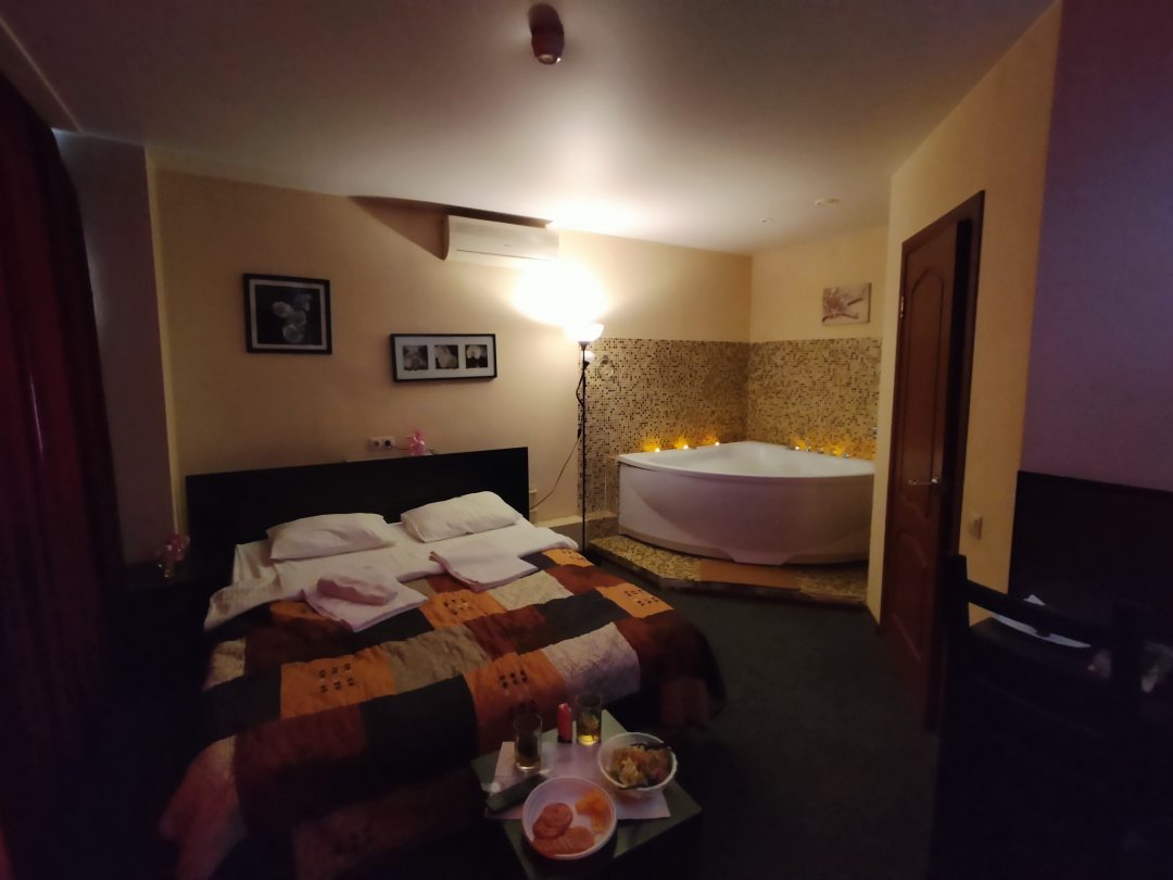 Уютный чистенький номер :) по началу смутило, что номер "для молодожёнов" прямо у рецепции, но с другой стороны, номера с джакузи в комнате и можно расположить только на первом этаже. Персонал приветливый и очень доброжелательный. Почилили с мужем в гидромассаже, остались очень довольны. Придём ещё