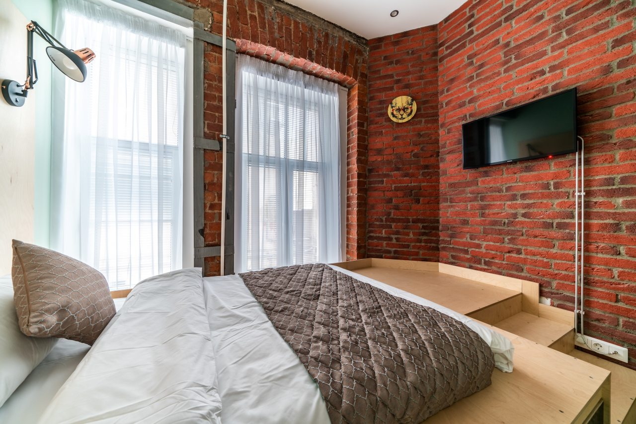На выбор гостям предоставляется несколько вариантов размещения. Стиль лофт совмещает в себе городскую практичность, фактуру кирпичных стен и деревянные элементы в интерьере. Каждый из дизайнерских номеров оснащён комфортной мебелью, кондиционером и телевизором, персональной ванной комнатой с набором средств личной гигиены, халатом и тапочками. К услугам постояльцев бесплатный Wi-Fi.