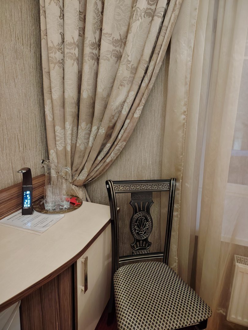 Проживали в номере стандарт,тихо уютно.В номере есть мини холодильник ,смарт ТВ,стол,стул,кровать тумбочки,шкаф,зеркала, шкаф,графин,стаканы, обогреватель. Собственная ванная с мыльными принадлежностями.Администраторы-девочки очень отзывчивые,выдали тапочки,халаты, по просьбе вазу. Завтрак нормальный, в холле три стола, кулер, посуда,которую можно брать в номер. чайные пакетики. Вещи можно после выезда из номера оставить на хранение.
