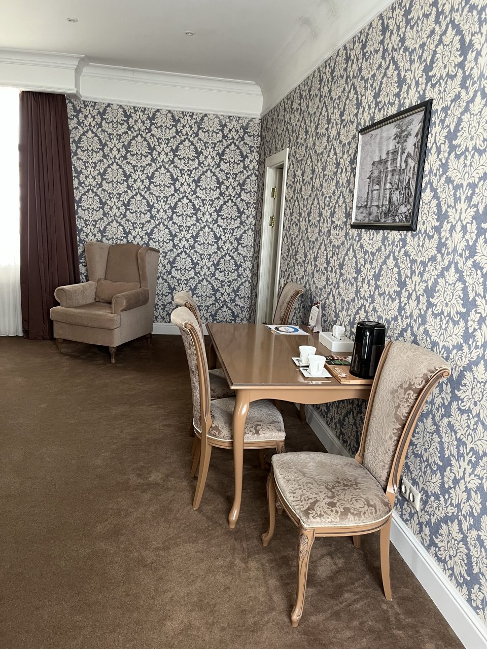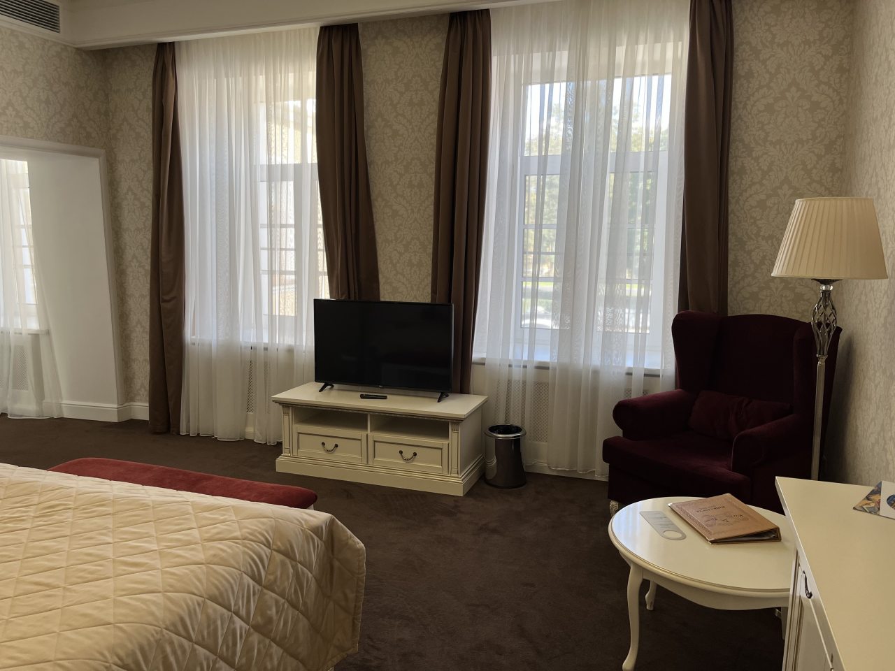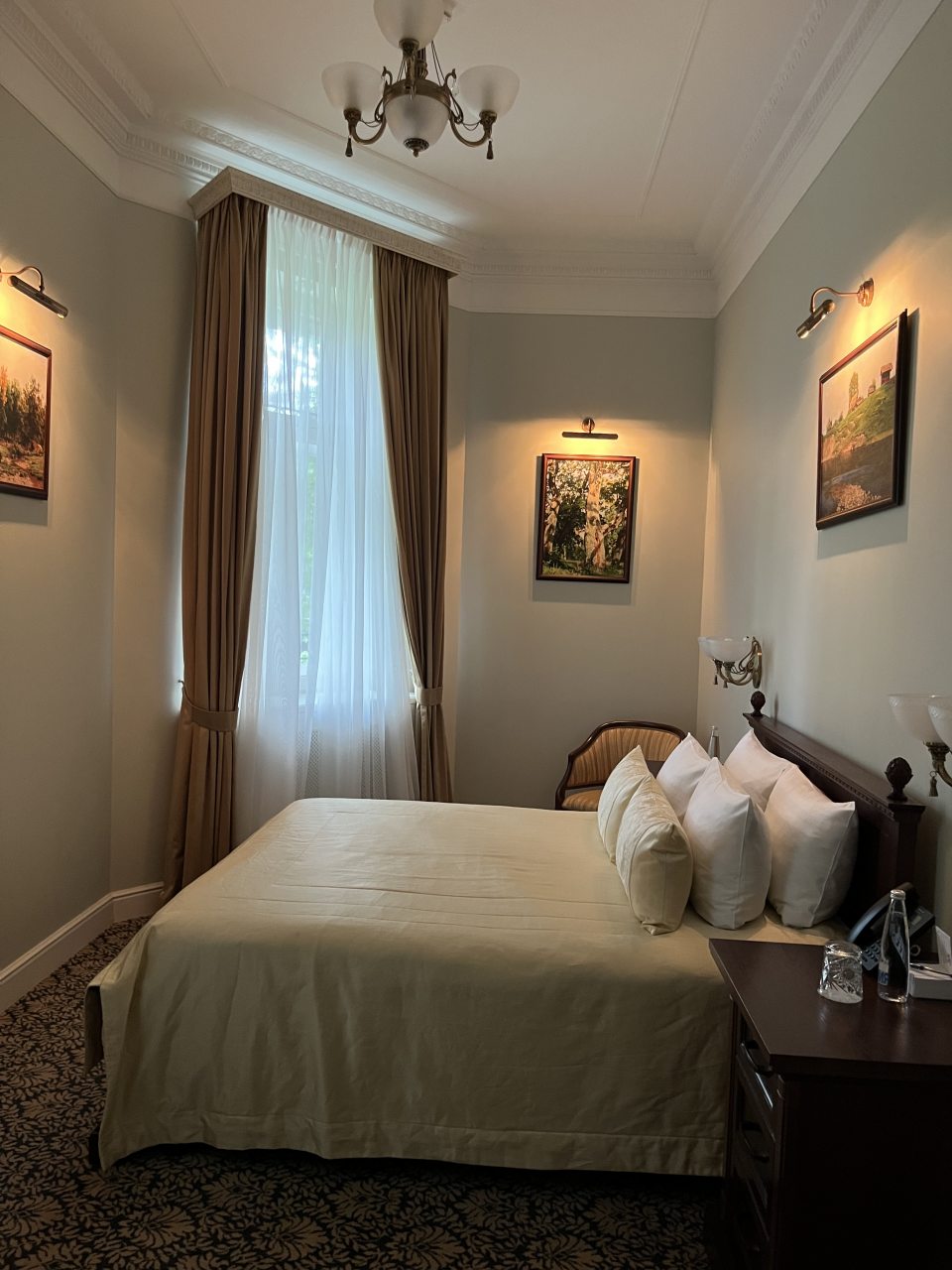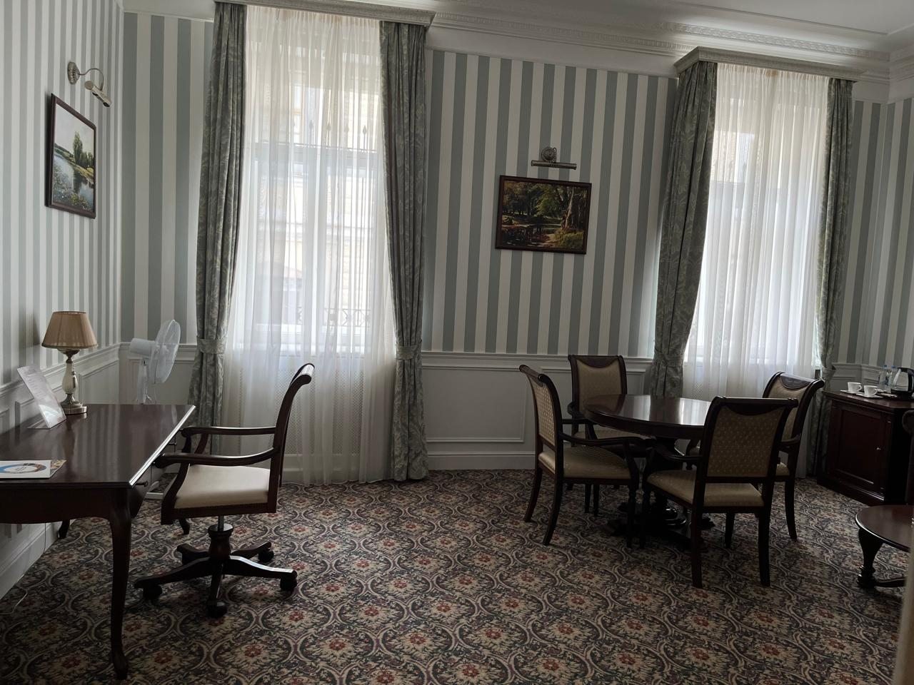 Здание старинное, внутри сохранена атмосфера эпохи. Номера просторные, с высокими потолками. Мебель удобная, интерьер выдержан в классическом стиле. Ванная комната современная, вода горячая есть всегда. В коридорах тихо и чисто. Атмосфера исторического особняка делает отдых необычным. Подходит для тех, кто любит атмосферу прошлого.
