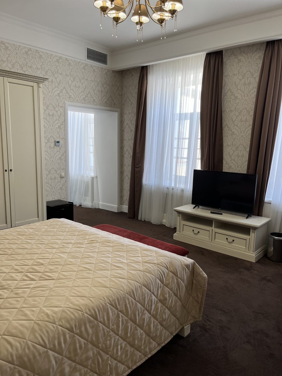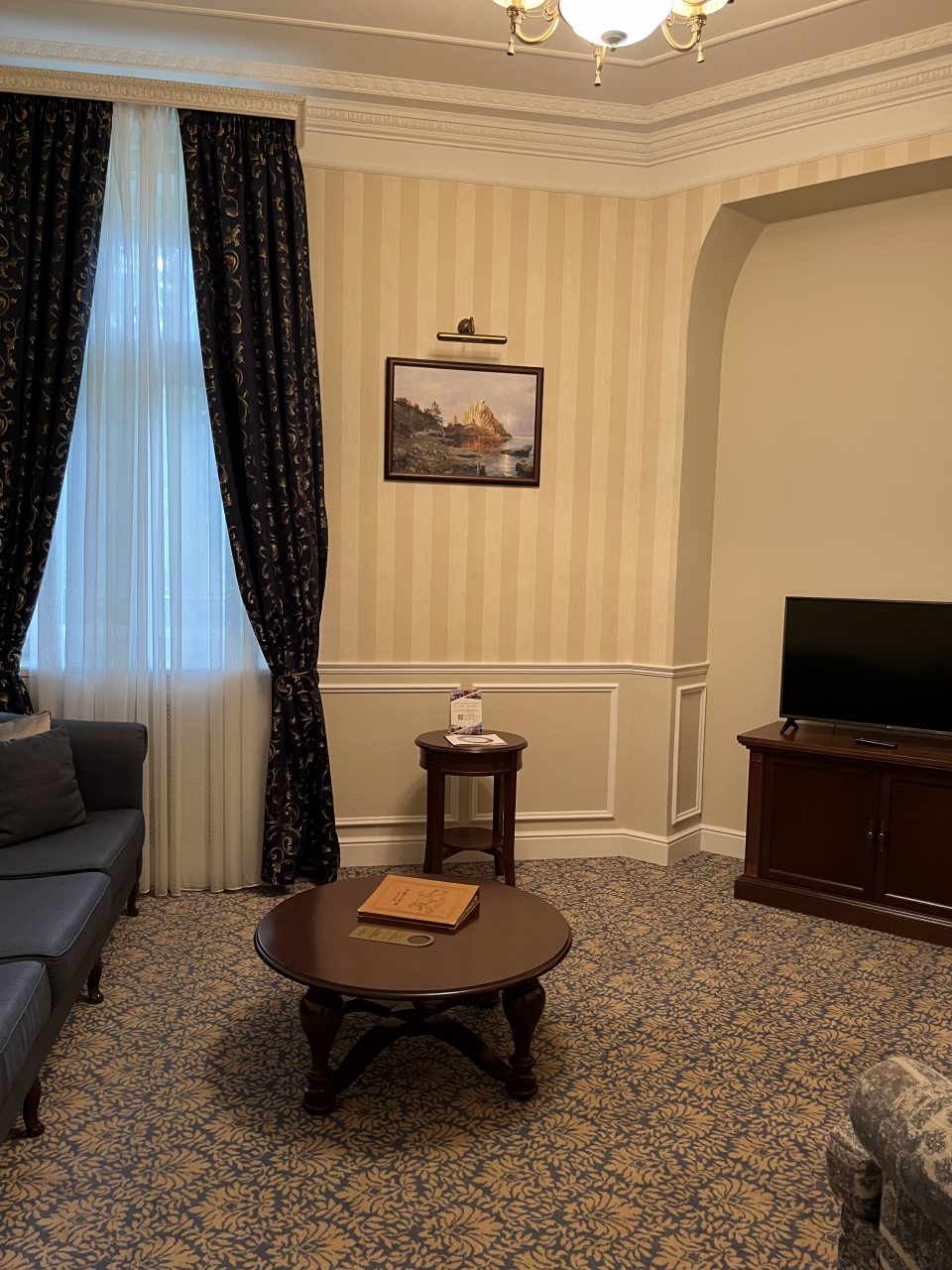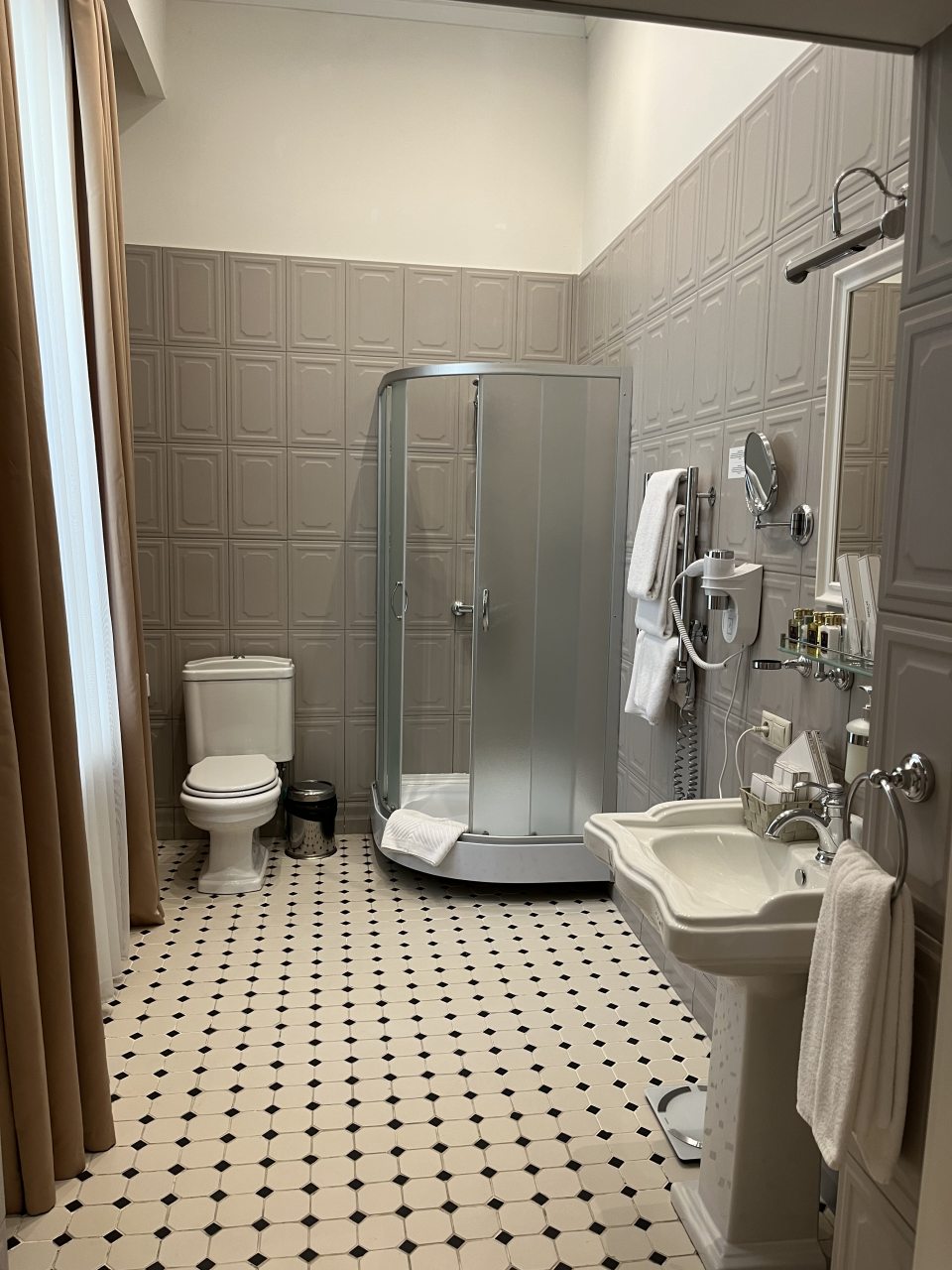 Здание старинное, внутри сохранена атмосфера эпохи. Номера просторные, с высокими потолками. Мебель удобная, интерьер выдержан в классическом стиле. Ванная комната современная, вода горячая есть всегда. В коридорах тихо и чисто. Атмосфера исторического особняка делает отдых необычным. Подходит для тех, кто любит атмосферу прошлого.
