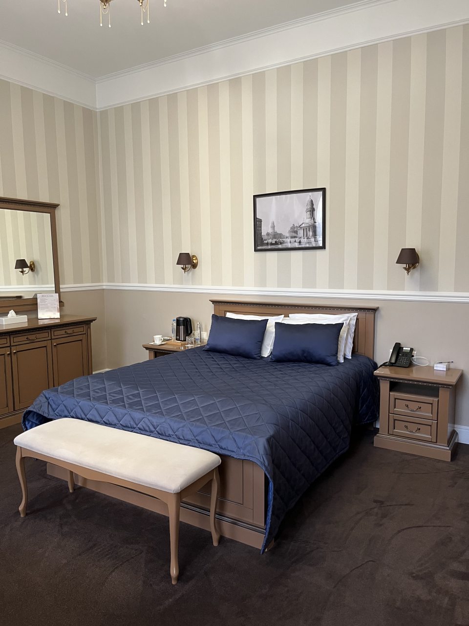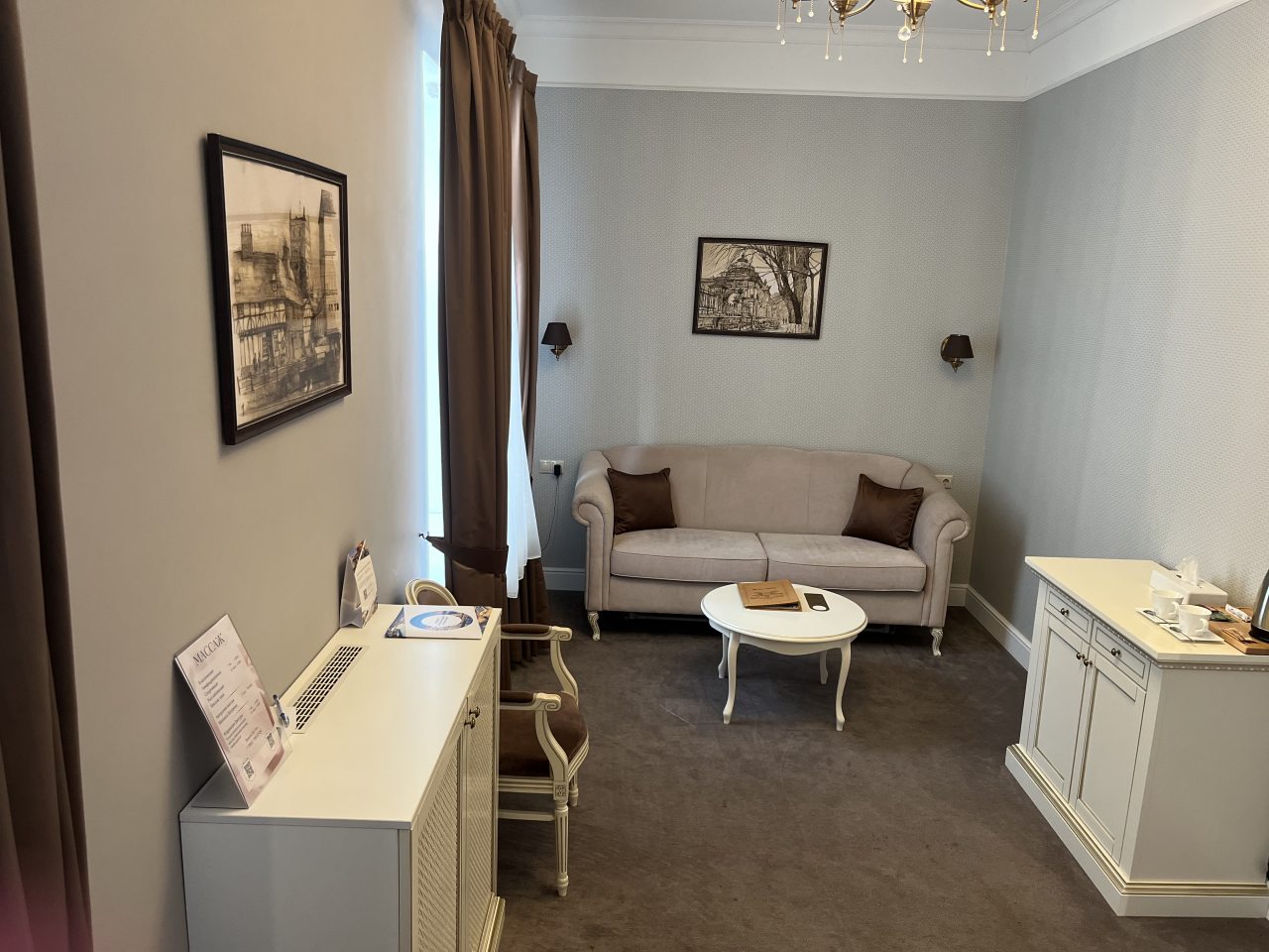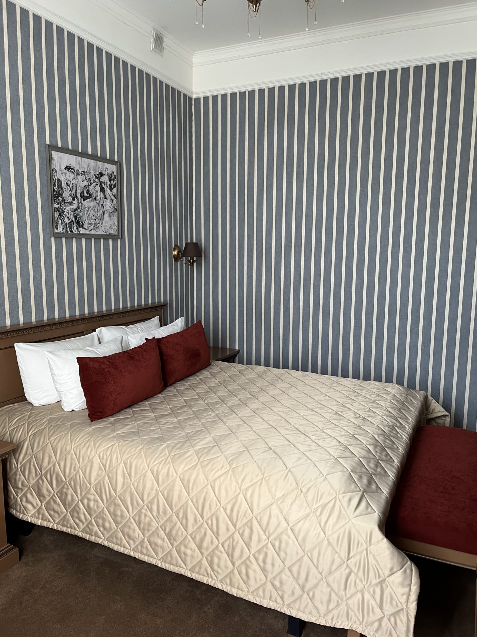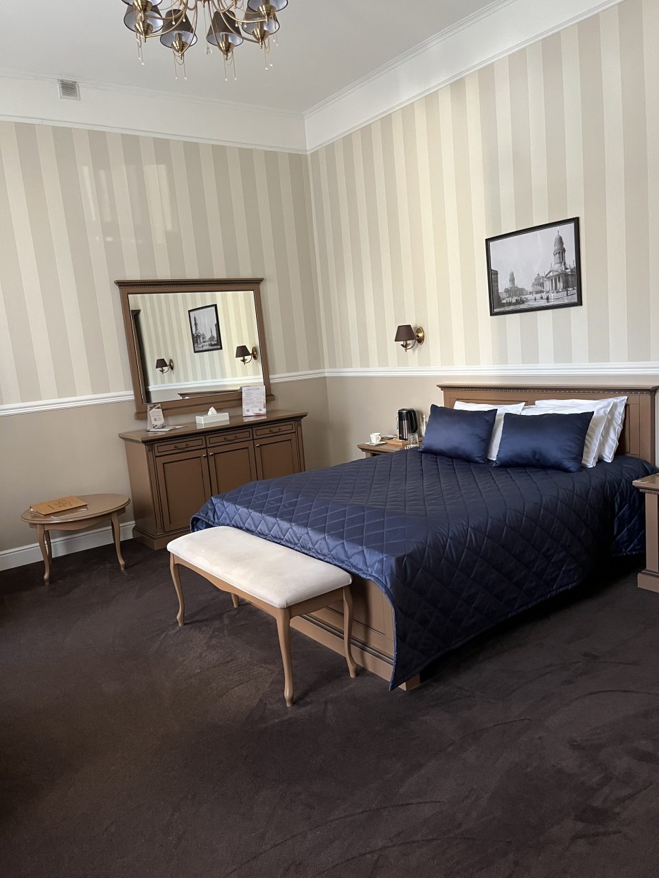 Здание старинное, внутри сохранена атмосфера эпохи. Номера просторные, с высокими потолками. Мебель удобная, интерьер выдержан в классическом стиле. Ванная комната современная, вода горячая есть всегда. В коридорах тихо и чисто. Атмосфера исторического особняка делает отдых необычным. Подходит для тех, кто любит атмосферу прошлого.