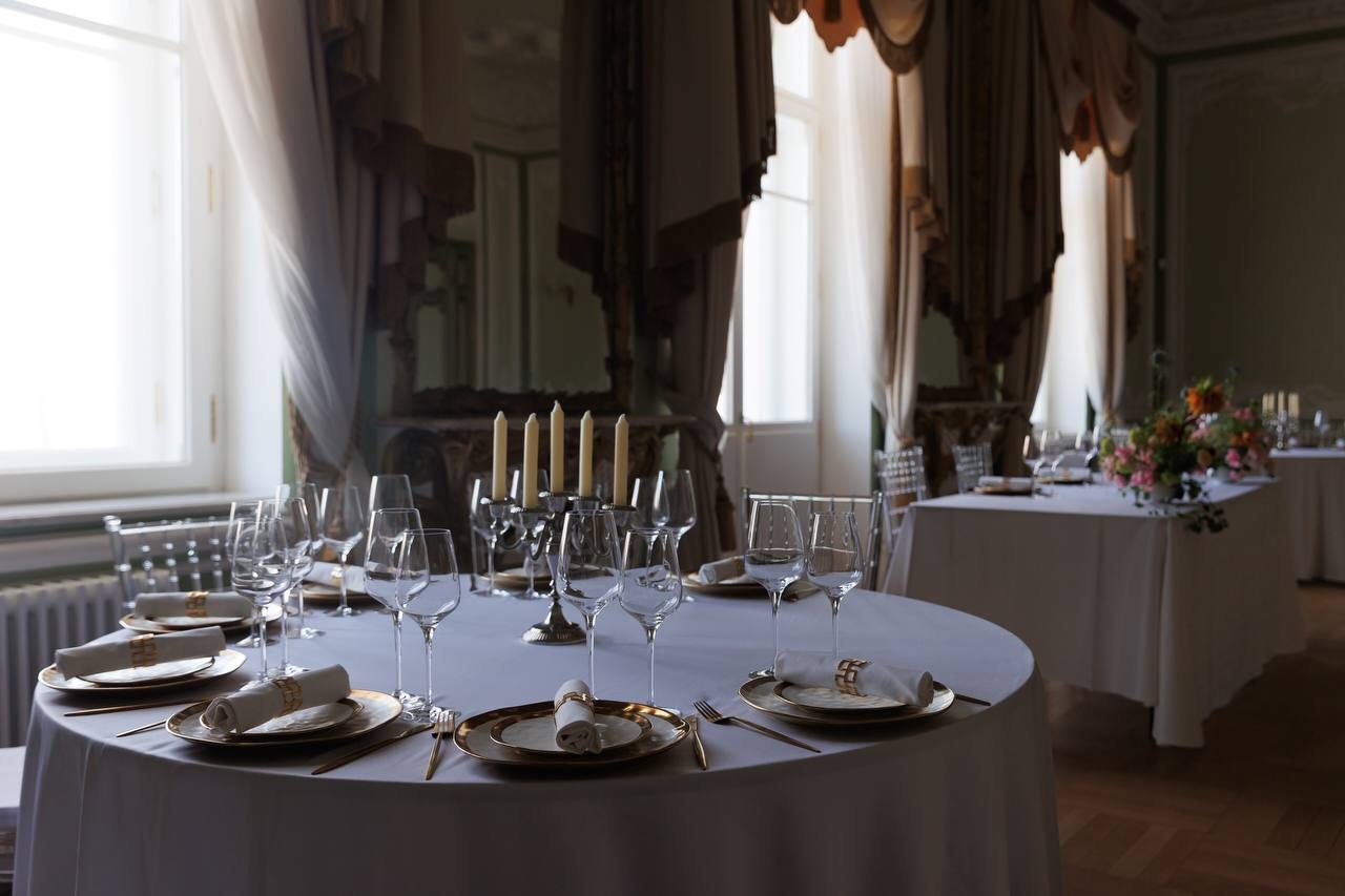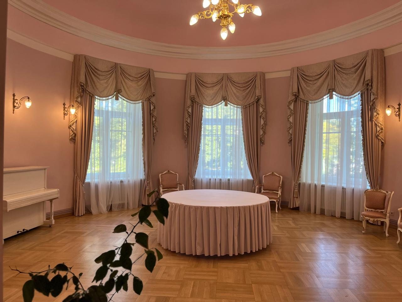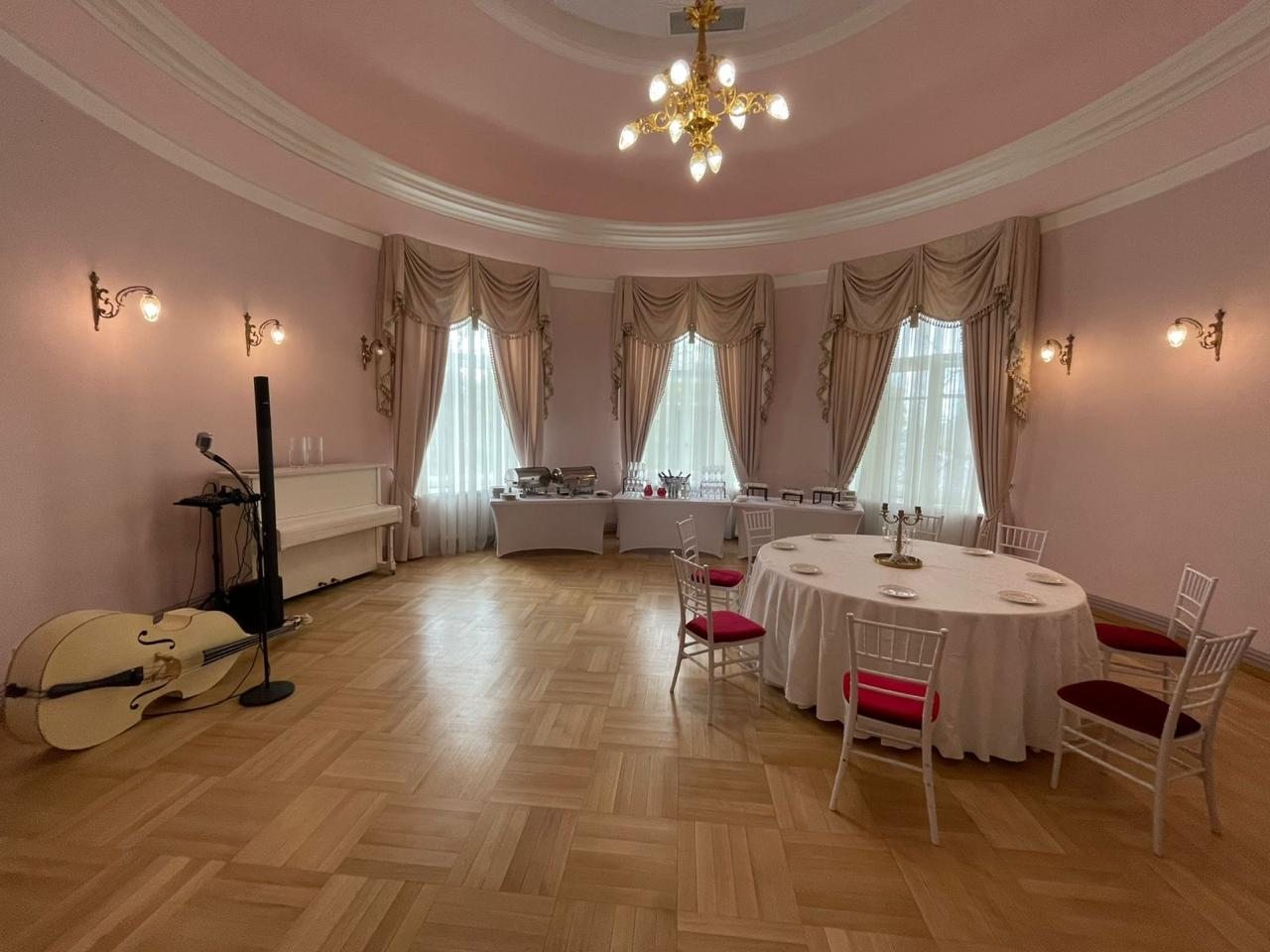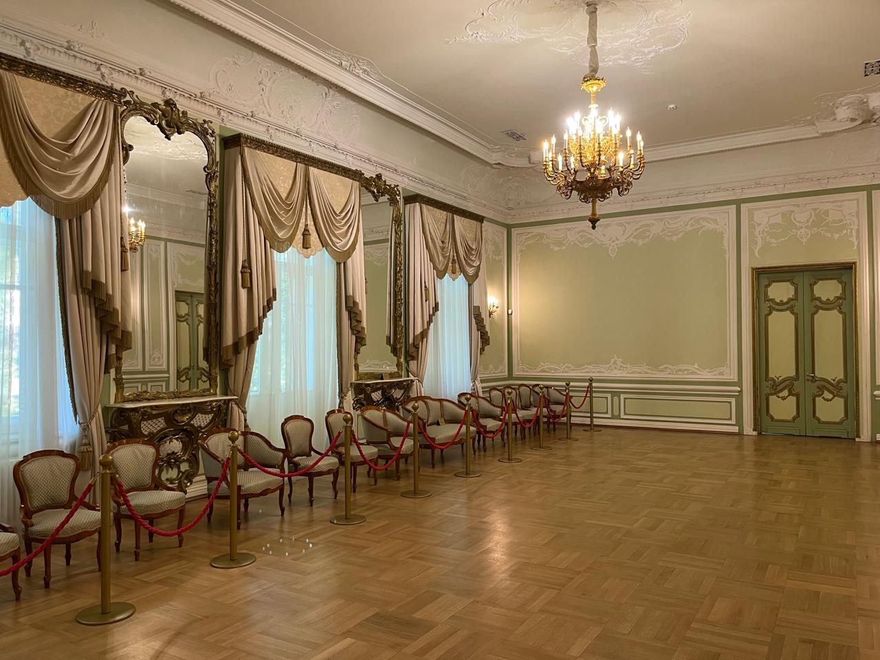 Для организации деловых встреч, фотосессий и корпоративных мероприятий в гостинице предлагаются парадные залы. Каждый зал роскошно оформлен, имеет индивидуальный интерьер и вместимость: Розовый зал: площадь составляет 60 кв.м. Вместимость 40 человек; Зелёный зал: центральный зал (бальный зал) - нарядный, светлый, самый большой. Площадь 100 кв.м; Охотничий зал: площадь 60 кв.м; Голубой кабинет: площадь 60 кв.м; Переговорная комната: 40 кв.м.