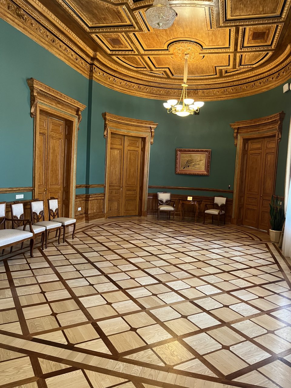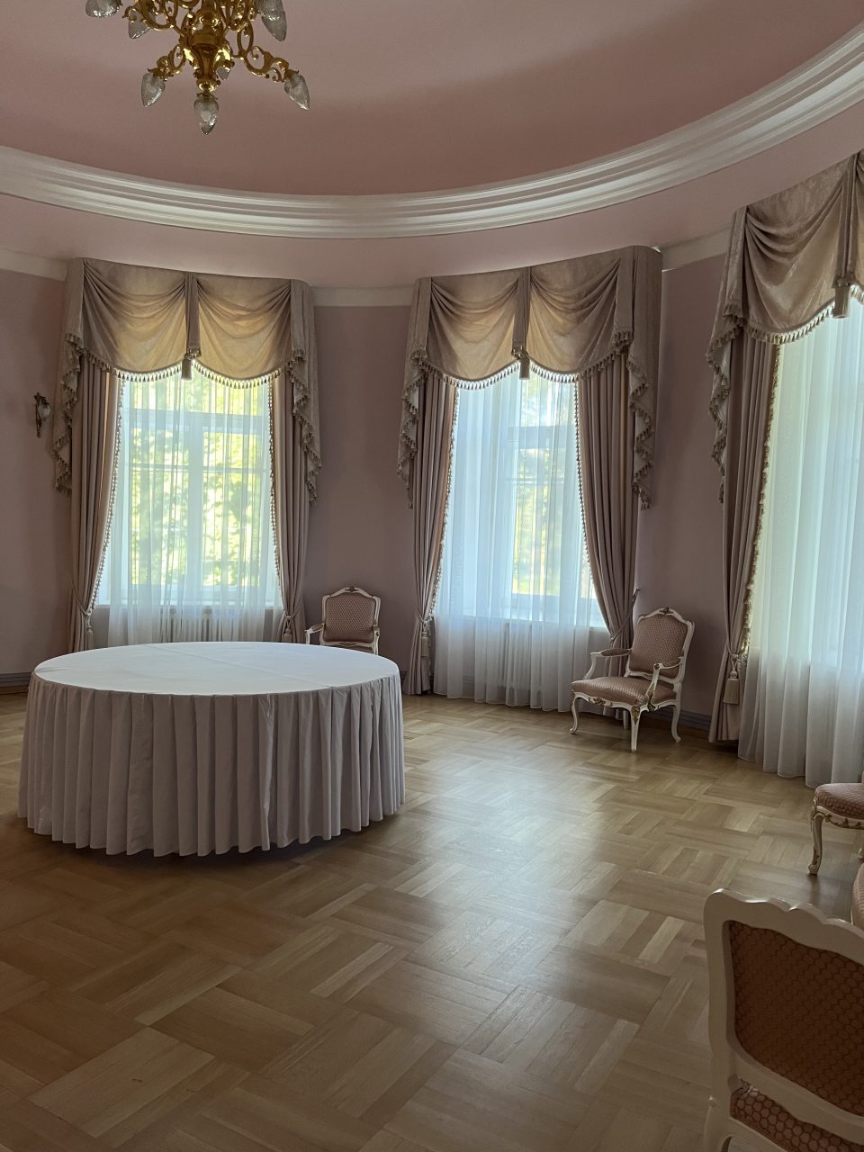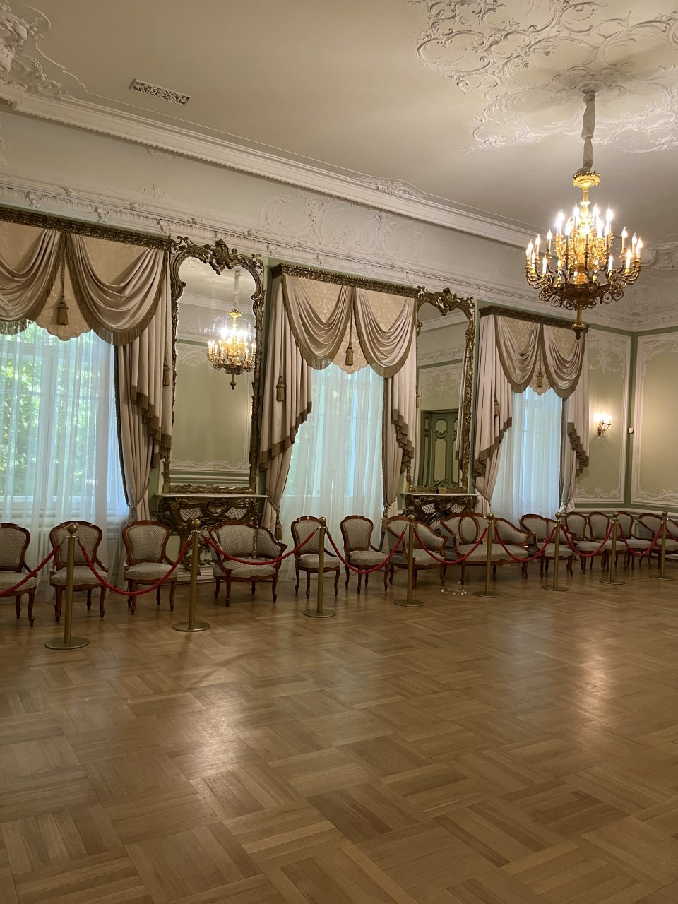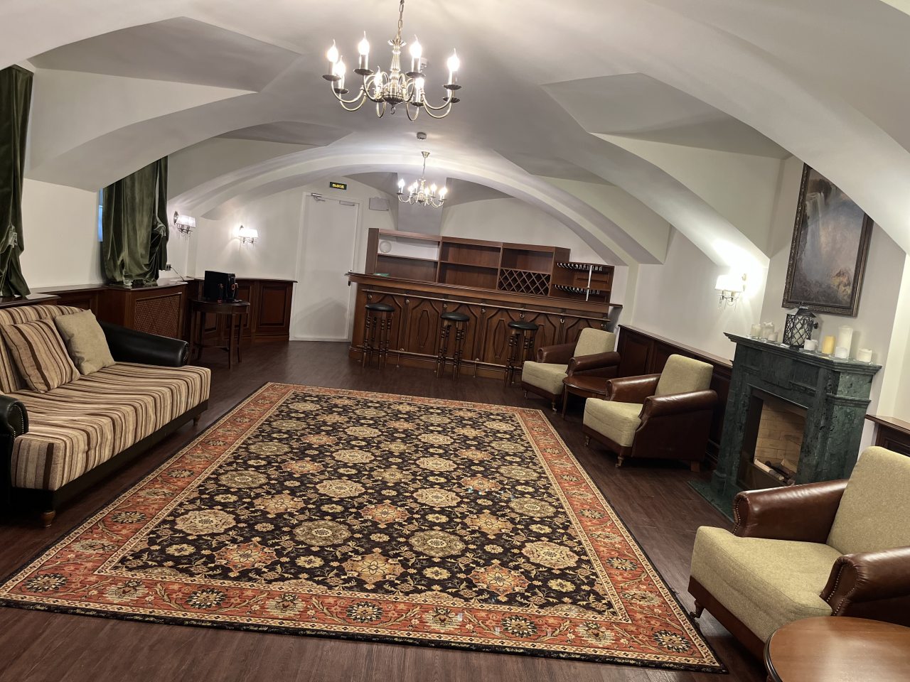Для организации деловых встреч, фотосессий и корпоративных мероприятий в гостинице предлагаются парадные залы. Каждый зал роскошно оформлен, имеет индивидуальный интерьер и вместимость: Розовый зал: площадь составляет 60 кв.м. Вместимость 40 человек; Зелёный зал: центральный зал (бальный зал) - нарядный, светлый, самый большой. Площадь 100 кв.м; Охотничий зал: площадь 60 кв.м; Голубой кабинет: площадь 60 кв.м; Переговорная комната: 40 кв.м.