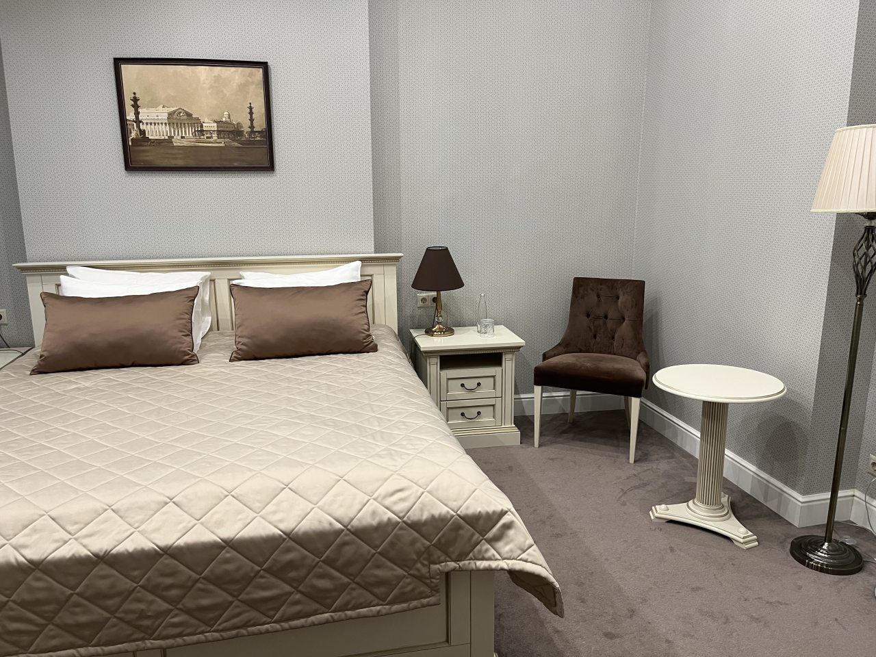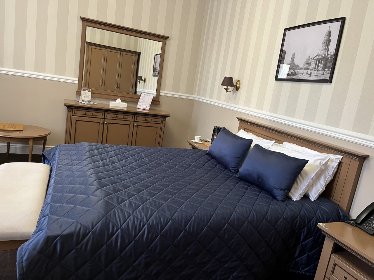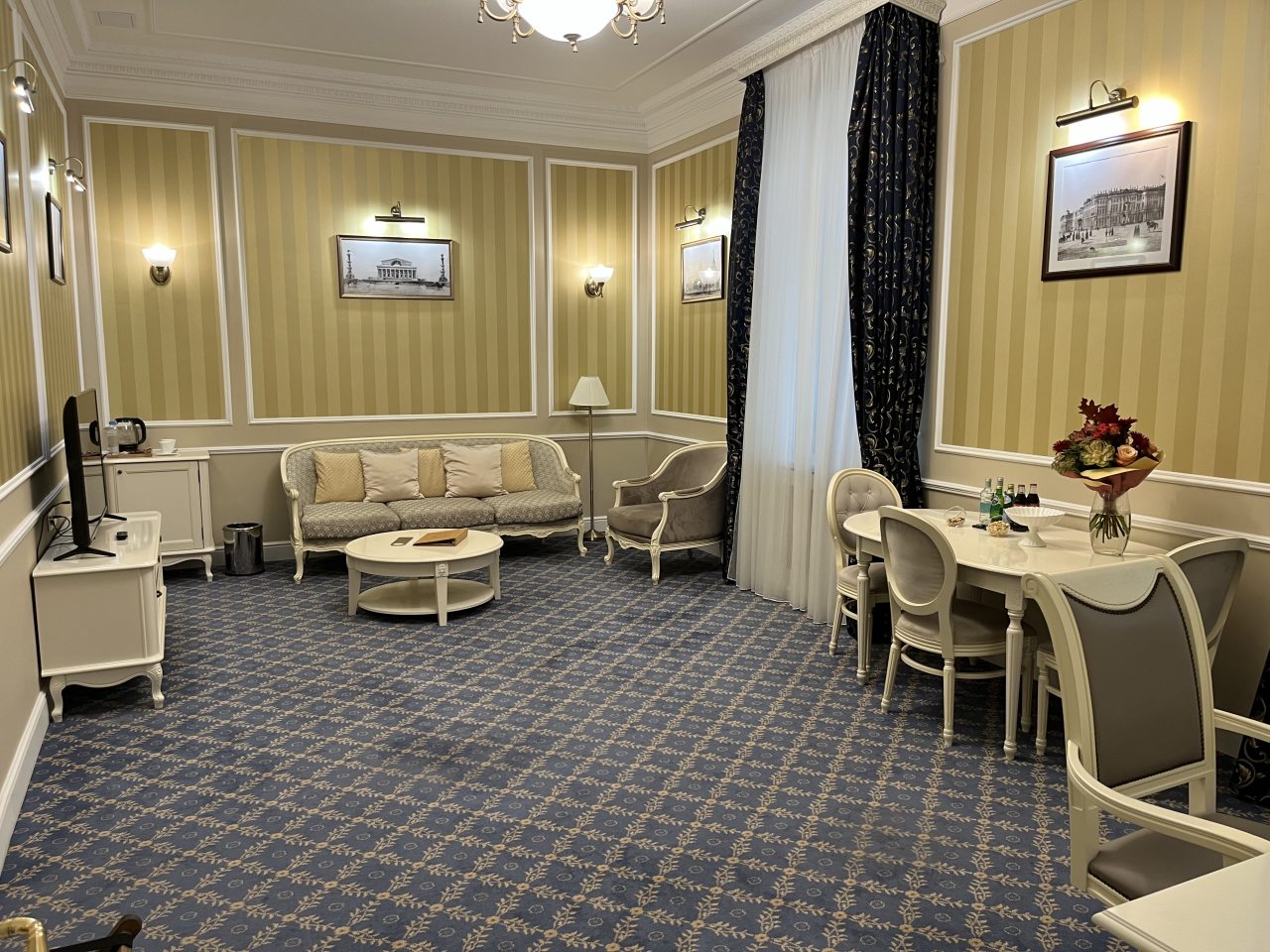 Гостиница находится в Санкт-Петербурге неподалеку от центральной части. Метро в нескольких минутах пешим ходом. Само по себе здание историческое, поэтому здесь царит особая атмосфера и очень интересно жить. Несмотря на заявленную старину, мебель в номерах роскошная, выполнена в классическом стиле. Телевизор в номере был, отлично работал и кондер.