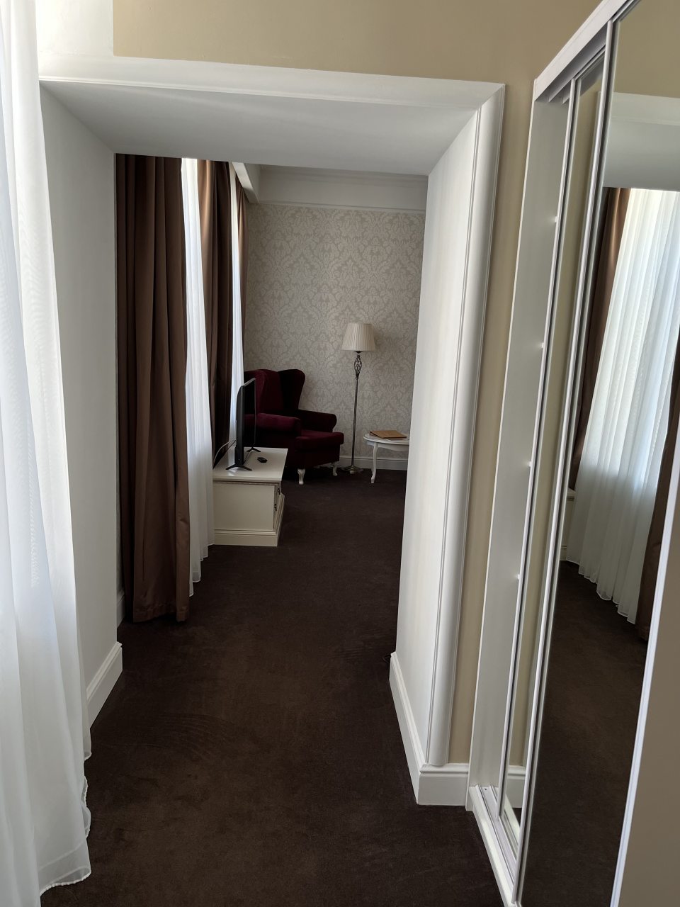 Уважаемый Захар, мы рады, что отдых в нашем отеле доставил Вам удовольствие. Спасибо, что отметили нашу атмосферу. Мы стараемся для каждого гостя создать условия для приятного и запоминающегося отдыха. Мы будем рады приветствовать Вас снова! С уважением, старший администратор Наталья Г., Особняк Военного Министра.