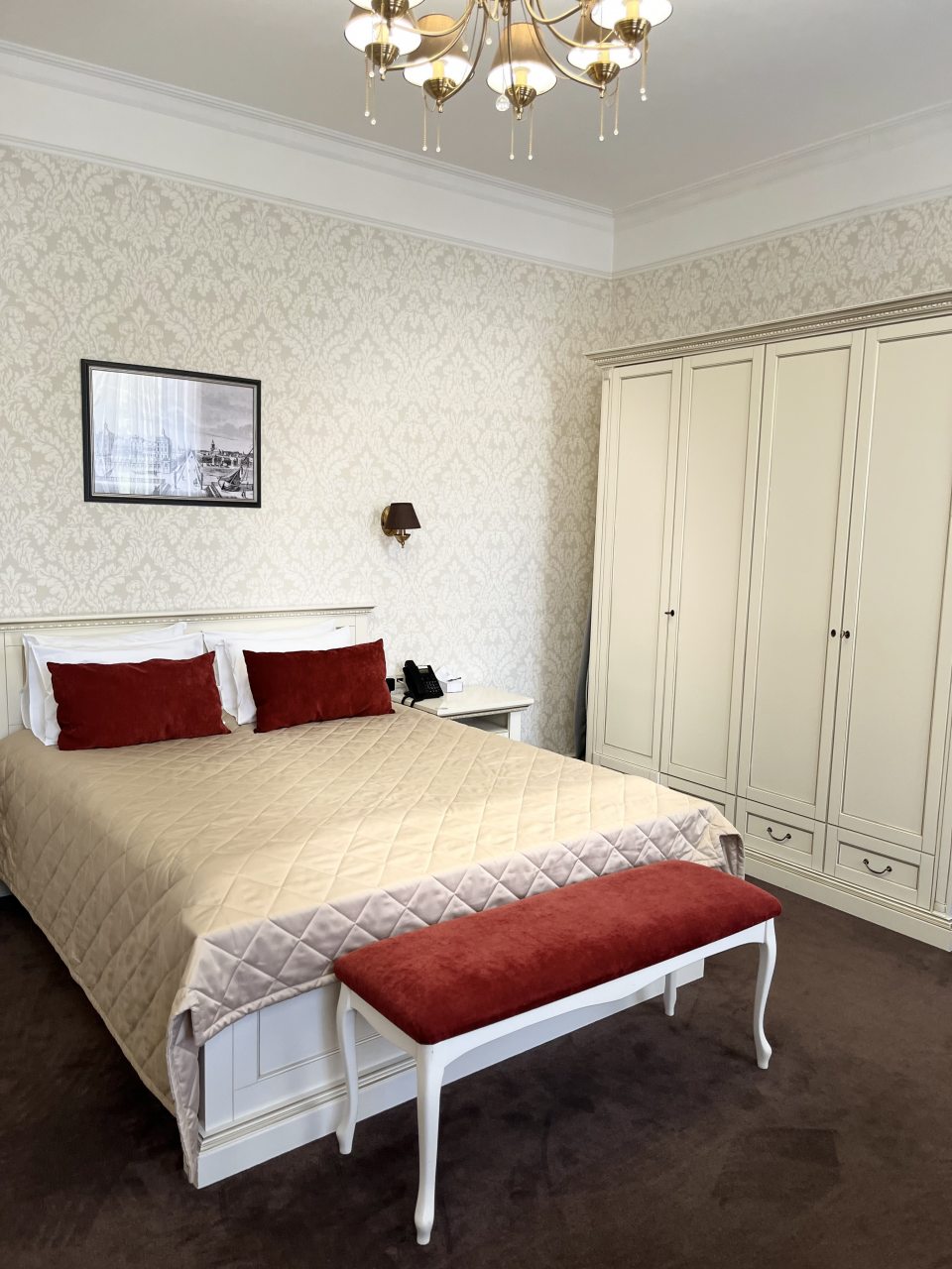 Отличное расположение. Нам предоставили апартаменты в два этажа. Очень опрятно, пусть и не современно, но все поддерживается в порядке. Комфортное постельное белье создает уют. Санузел функционирует без нареканий. Завтрак не брали. Один раз поужинали, но кулинарный опыт не сравнился с положительными впечатлениями от гостиницы и нашего номера. Вблизи есть заведения с более интересным меню.