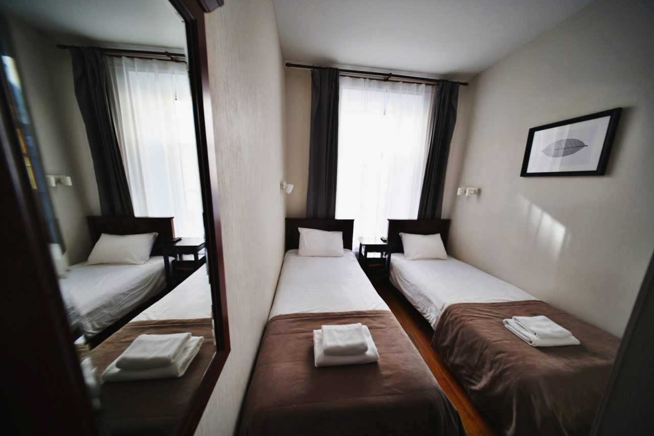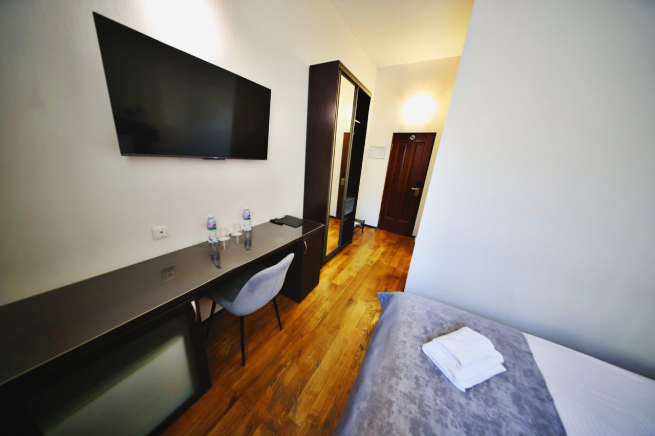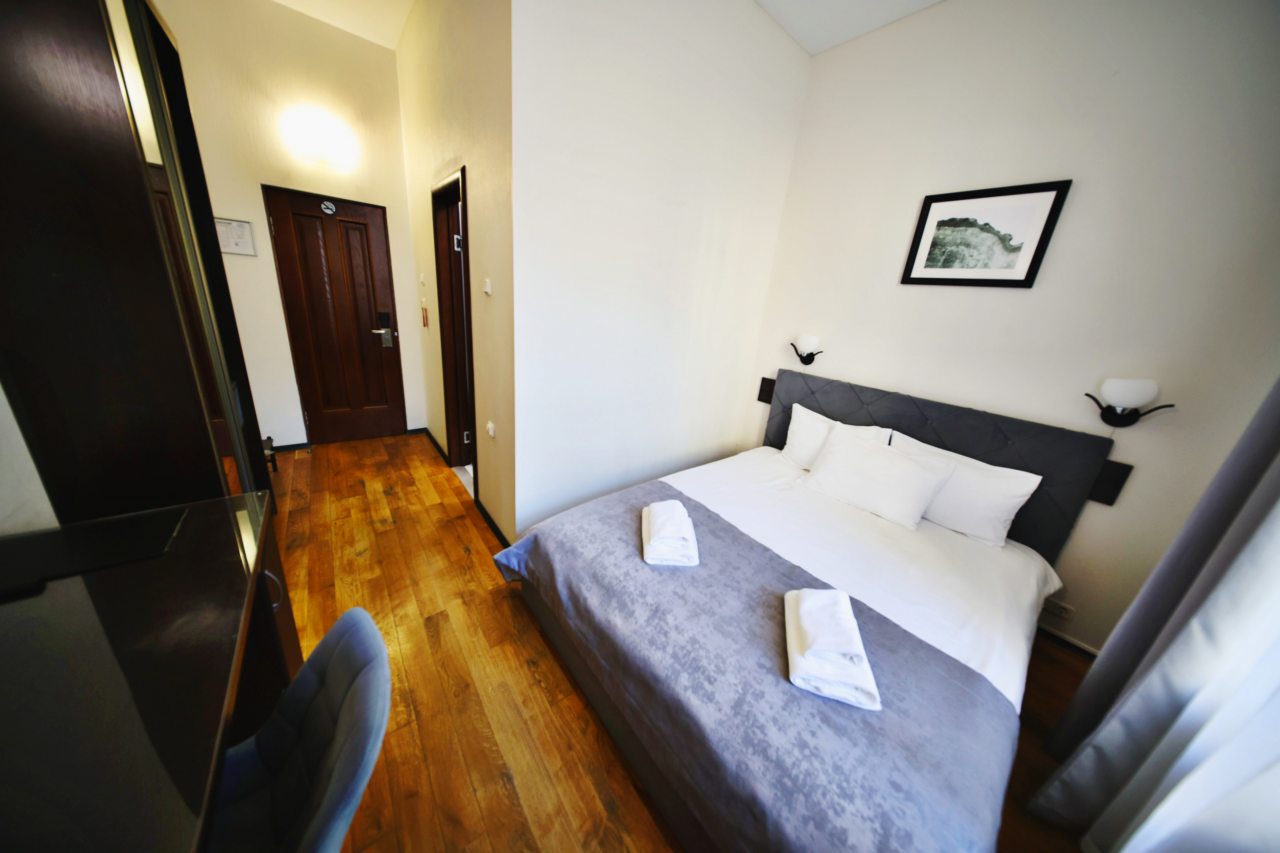 Интерьер комнат выдержан в приятных светлых тонах. Внутри есть всё для вашего комфортного проживания, включая доступ в интернет, удобную кровать, телевизор, качественную мебель. В зависимости от выбранного номера, в санузле будет душ или ванна, а также другая необходимая сантехника.