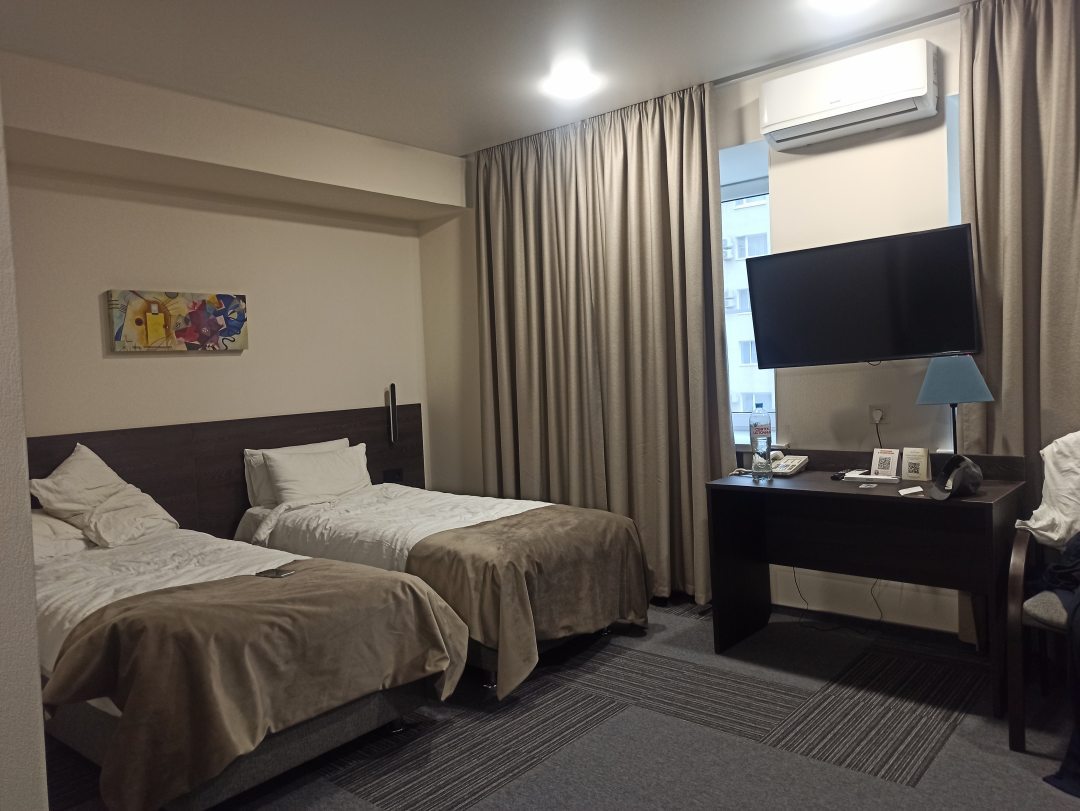 Проживали в отеле несколько дней. Номер двухкомнатный. В каждой комнате телевизор. Чисто. Сантехника исправно работает и в ванной нет посторонних запахов. Звукоизоляция не особо хорошая, но для сна это не мешало. На завтраках очень понравились каши и запеканка. В целом цена и качество соответствуют.