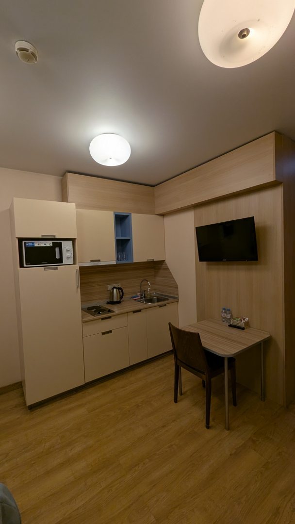 Для приготовления пищи в каждом номере оборудована кухня, оснащенная большим холодильником, посудой, техникой и столовыми приборами. Прекрасной альтернативой станут ресторан европейской кухни и бар, расположенные в здании отеля.