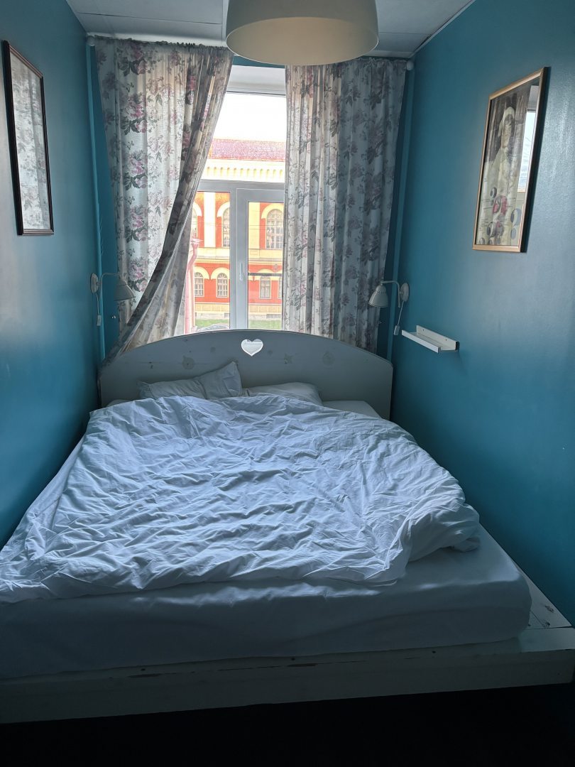 Отель уютный, чистый, останавливаюсь здесь не первый раз. Проживала в двухместном номере одна, цена для центра Петербурга вполне приемлемая. Окно выходило на улицу Восстания, но даже некоторый шум с оживлённой улицы лично для меня не проблема, совсем не мешал. Наоборот, вечером особенно приятный вид из окна на ярко и красиво освещённую улицу. Разумеется, при закрытых шторах освещение в номер почти не проникает. В номере двуспальная кровать, покрытая белоснежным бельём, стол, стул, табурет, удобный настенный шкафчик для мелких вещей, есть вешалка и зеркало. Освещение как общее, так и местное (бра с обеих сторон над кроватью). В душевых, туалете всегда чисто и приятно пахнет, видно, что горничные работают на совесть. В столовой также всегда чисто, есть электрочайник, микроволновка, холодильник, всё необходимое из посуды. Очередей нигде не наблюдала, всё очень хорошо расположено и организовано. Также приятные и доброжелательные сотрудники на ресепшене, всегда внимательные и готовые помочь. Всем гостям Петербурга рекомендую этот отель, кстати, совсем недалеко станция метро "Площадь Восстания", остановки общественного транспорта, что составляет дополнительное удобство. В свои последующие приезды в Петербург планирую останавливаться в "Друзьях на Восстания".