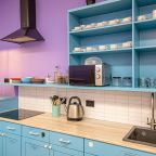Для дополнительного комфорта предусмотрена кухонно-столовая зона, где вы можете приготовить любимые напитки и блюда, а также приятно провести время. В наличии варочная панель, СВЧ, чайник, холодильник, посуда.
