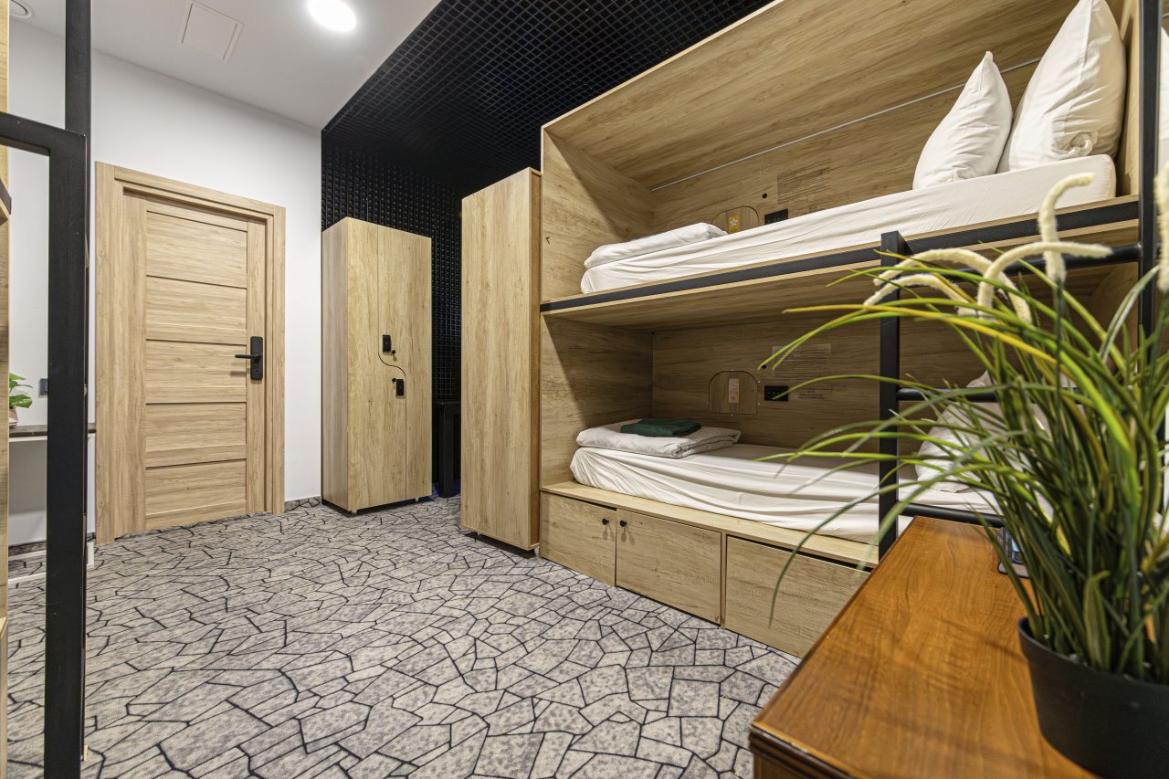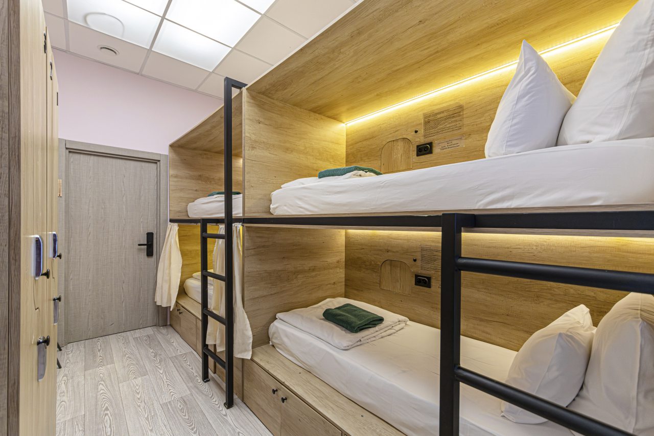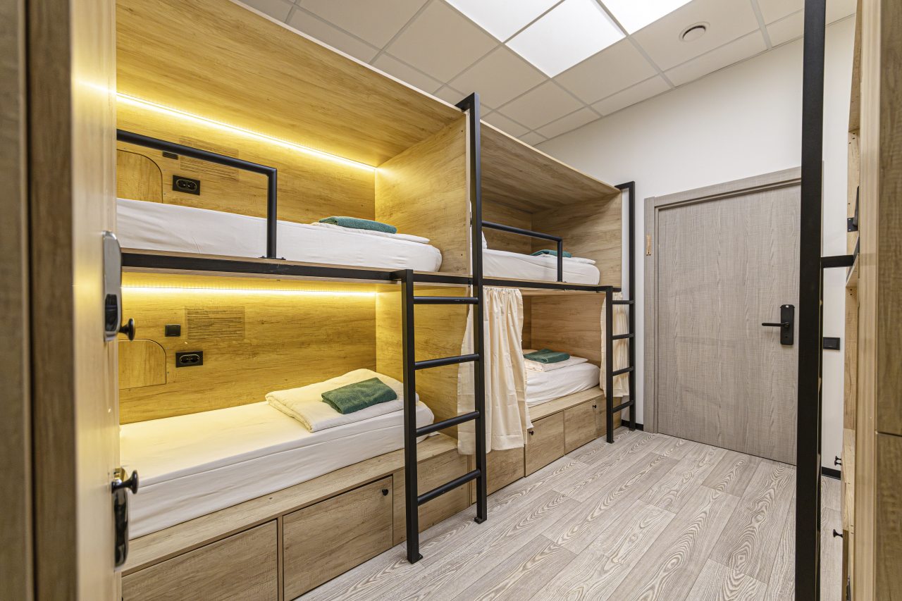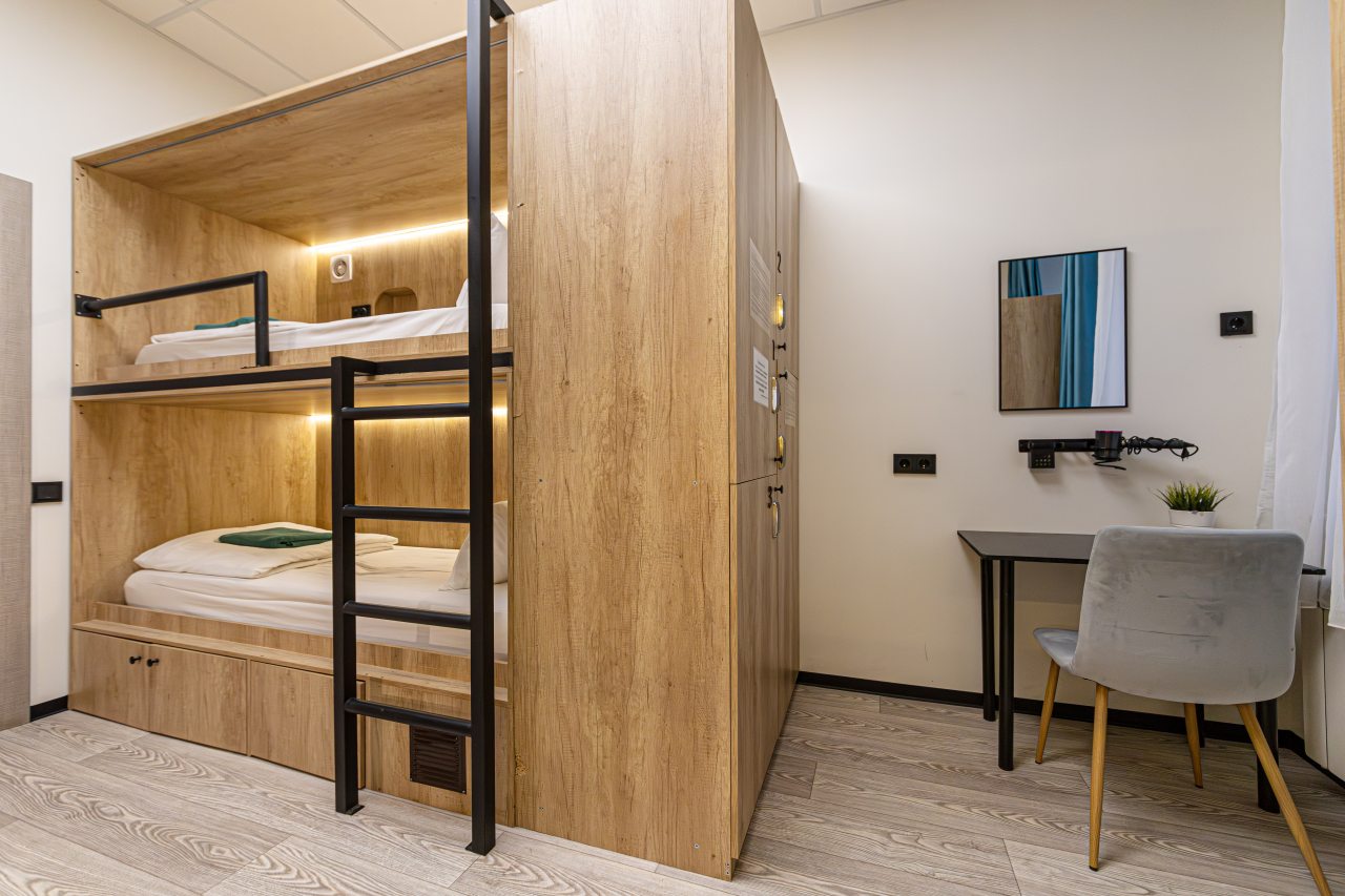 В каждом номере вас ожидают удобные кровати, индивидуальная подсветка и розетка, шкафчик для хранения вещей. Номера доступны различные по вместимости. Санузел оснащен средствами для гигиены и стандартным набором сантехники.