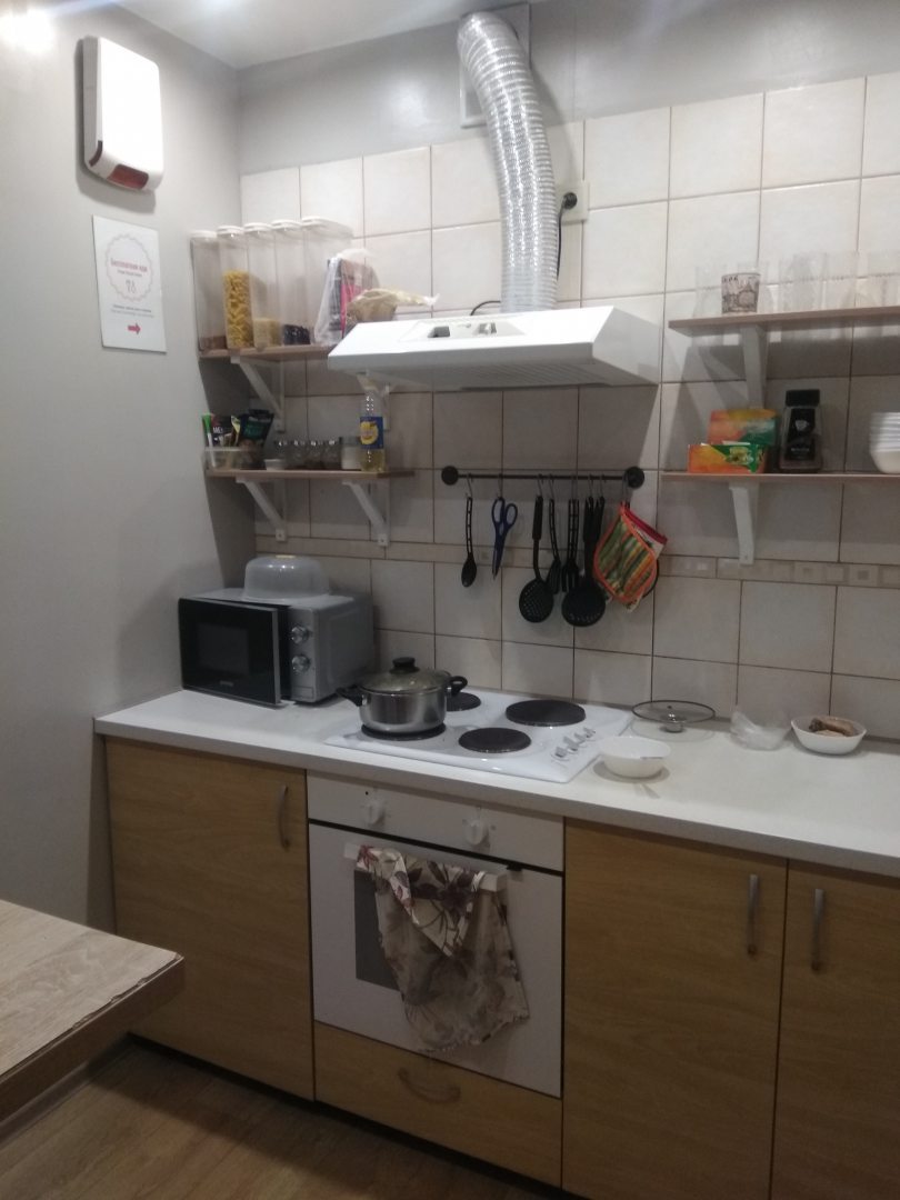 Готовить еду Вы сможете на общей кухне. В наличии плита, холодильник, обеденный стол, микроволновая печь и столовые принадлежности.