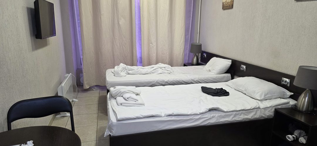 Сам отель тоже тихий,чистый.Для скромных в запросах постояльцев.Для одежды есть небольшой стеллаж с полками и плечиками. Есть всё необходимое в номере,но без излишеств.Меня всё это устраивает.Работницы добросовестно убирают номера.Цена в октябре была н же,чем в других отелях.Оплата по прибытии.
