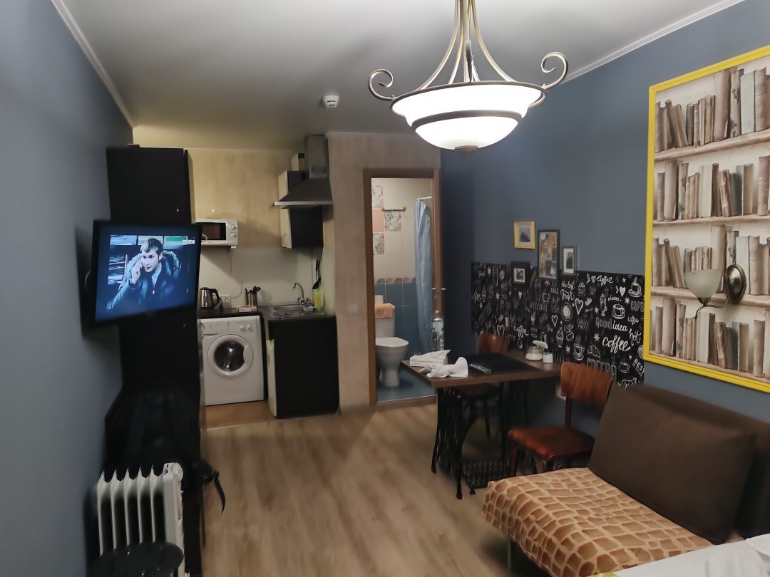 Очень уютный мини отель с особым антураж и стилем, полноценный номер, создаётся впечатление полноценной студии со стиральной машиной, гладильной доской, уголком кухни, рабочим столом, креслом