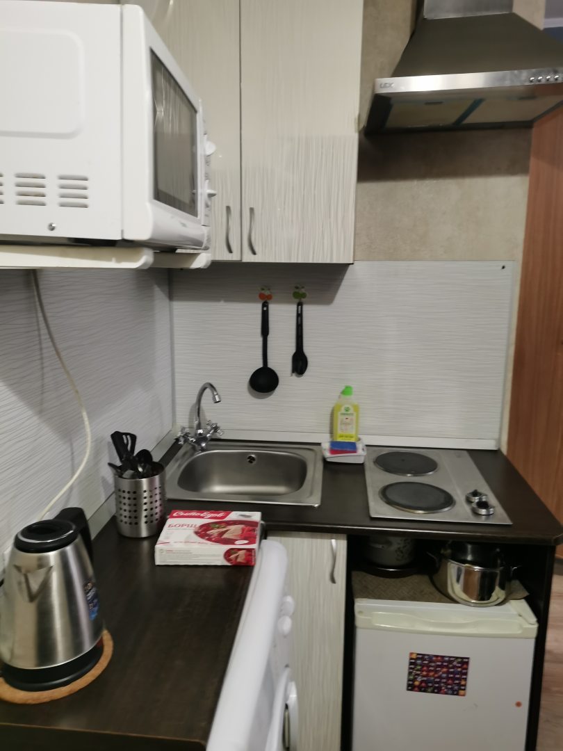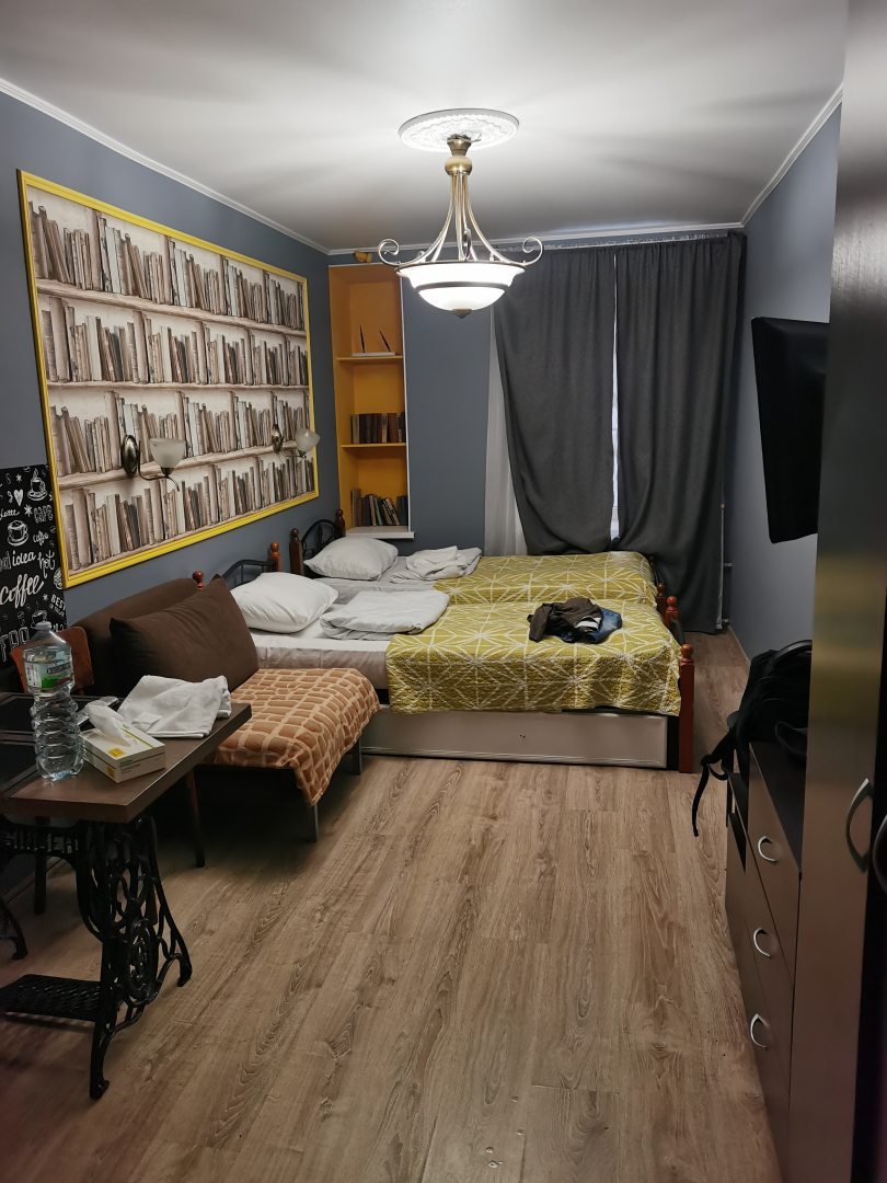 Не первый раз отдыхаю в Питере. Данный вариант размещения пришелся по душе. Оператор предварительно связался, подтвердили бронирование и прислали инструкцию с указанием пароля и дальнейшей схемой размещения. Номер расположен на первом этаже. Из преимуществ- все необходимое для проживания, удобная кровать ( матрас имеет значение!). Маленькая ванная- но для недолгосрочного размещения и этого вполне достаточно. Номер действительно чистый- готовят под каждого гостя ( пердварительно уточняют время прибытия и время выбытия).Из всего необходимого есть все- плита, холодильник, микроволновка, телевизор,набор посуды и чайник. Много удобных мелочей- фен, утюг, сушилка и т.д. Дополнительное постельное белье, одеяла и полотенца. Поэтому могу смело утверждать- что очень удобный вариант для размещения. Гостиница расположена в центре- так что пешком в любую точку удобно добираться даже не используя транспорт! Много магазинов типа Дикси, Магнит и т.д., кафешки, ресторанчики.