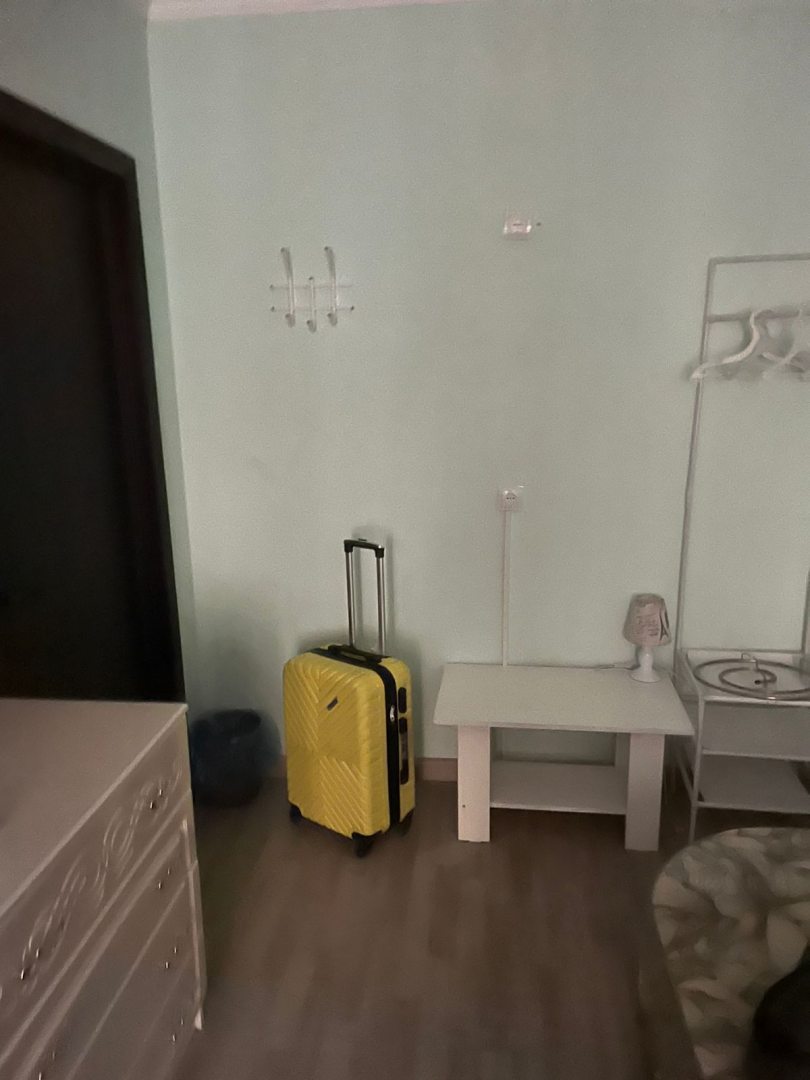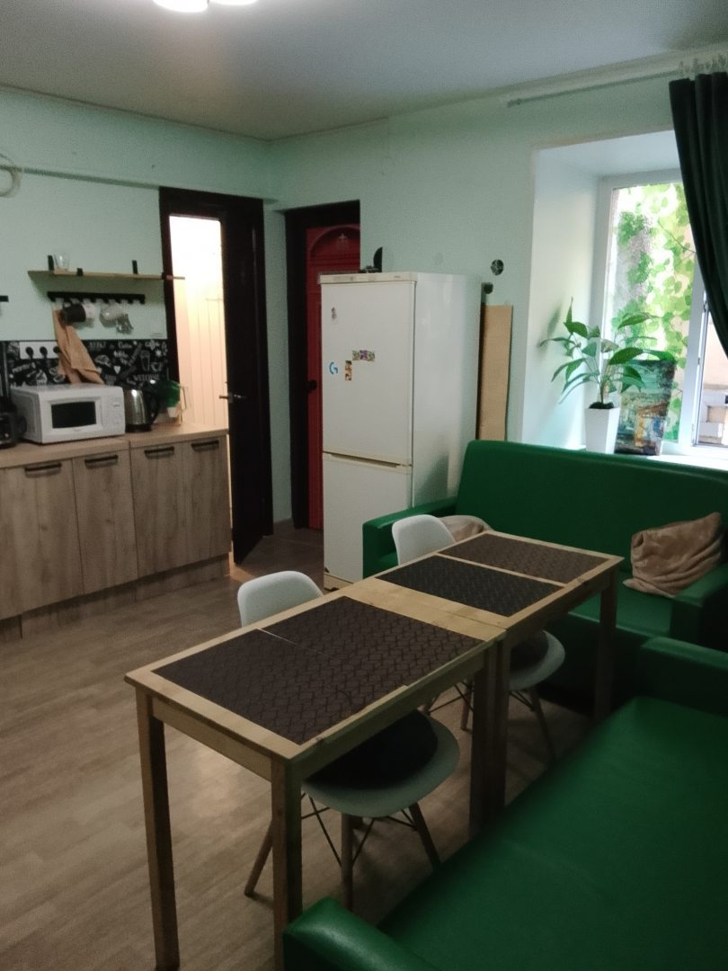 Просторная комната, уютная и чистая. Проживали с сыном 4 суток, остались довольны: не шумно, никто не мешал, соседи доброжелательные. Места общего пользования оснащены всем необходимым. На кухне есть холодильник, микроволновка, чайник, мультиварка, посуда... Для проживающих есть гладильная доска, утюг, стиральная машина.