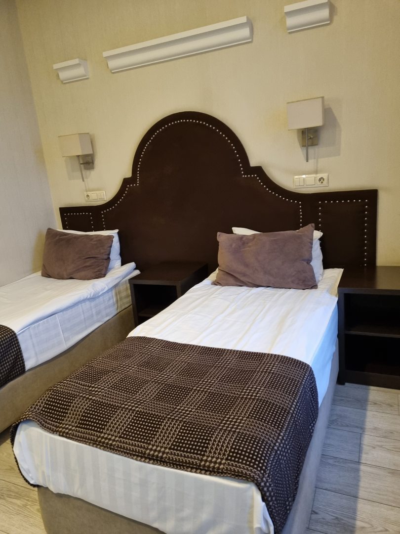 Останавливаясь в этом отеле не впервые. Выбираю из-за отличного расположения, качества номеров и обслуживания. Очень приятно, когда на рецепш встречает вежливый и гостепреимный администратор, в частности Светлана. В номерах выполнен качественный ремонт, новая мебель,удобная кровать, есть холодильник, телевизор,, стол, шкаф, чайник и посуда. В ванной- душевая кабина, принадлежности для душа, чистые полотенца, фен. Качество сна - отличное, есть тёмные шторы и двойные стекла , не слышно шума с улицы. Утром в номер подают завтрак на выбор из 6 вариантов, у меня меню номер 3.. Рекомендую и обязательно вернусь