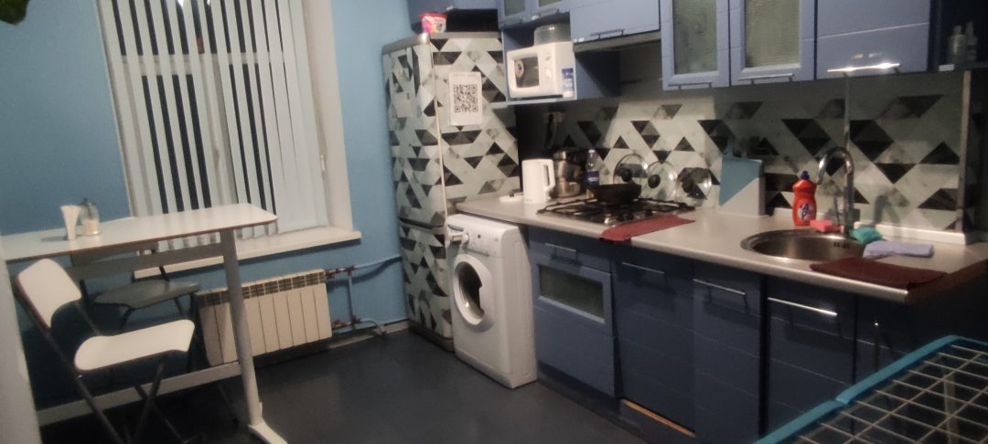 На общей кухне присутствует мойка, плита, холодильник, микроволновая печь. Купить продукты можно в супермаркете, он находится на территории здания. Кафе «Yagoda» расположено в 176 м.