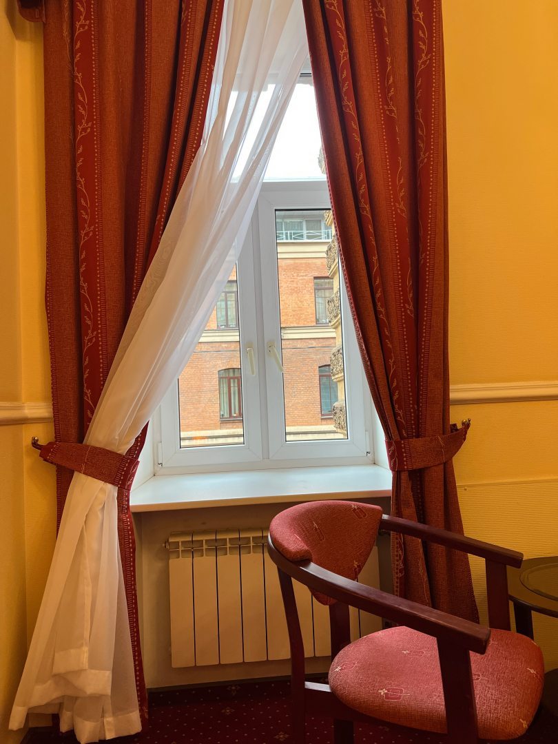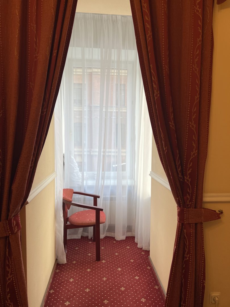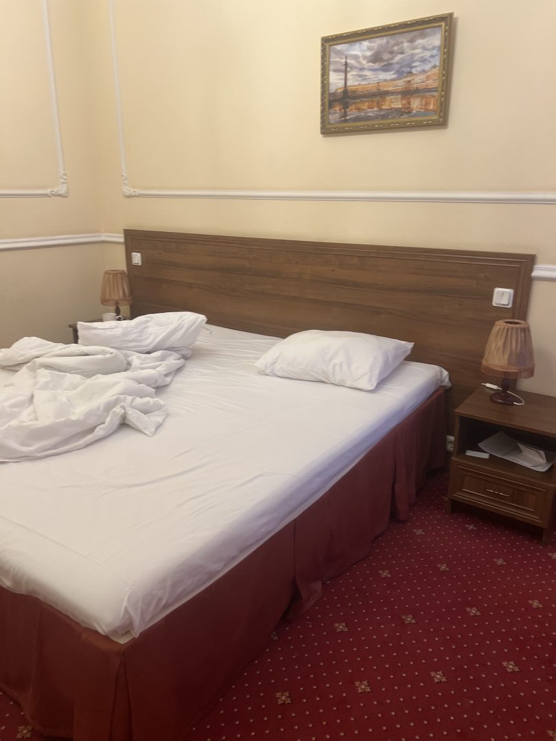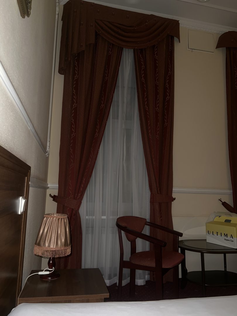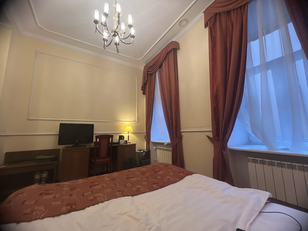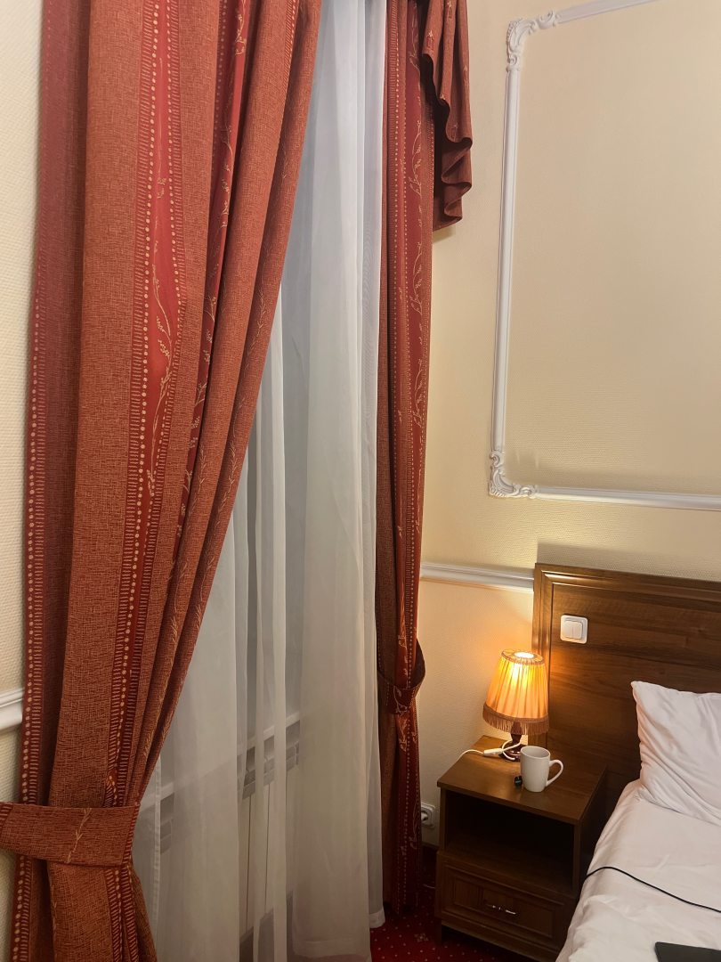 Отель просто суперский. Очень понравился декор. Как в старые добрые времена. Постельное белье всё чистое. Особенно порадовала ванная. Приятные душевые, чистые полотенца, огромное зеркало. Фен. Очень нравится большие подоконники. Я здесь сижу и завтракаю прямо на них. От метро примерно минут 10 пешком. Зато район тихий машины ездят очень редко. Звукоизоляция хорошая. У меня свой интернет. Но посоветую привезти свой интернет. Потому что здешний интернет слишком сильный задачи выполнить не сможет. Но самые базовые точно может. Очень приятный персонал. Дали мне обогреватель. Насекомых нет. Есть бойлер с водой. Можно брать чай. Дают зонтики под залог. Для фото я использую свои собственные ключи. Для тех кто не знает как найти дверь потому что там нет вывески, смотрите на слово виски и вино, идёте направо, там будет парадная. Под буквой Р звоните. В любом случае если что, ищите телефон в интернете он везде есть.