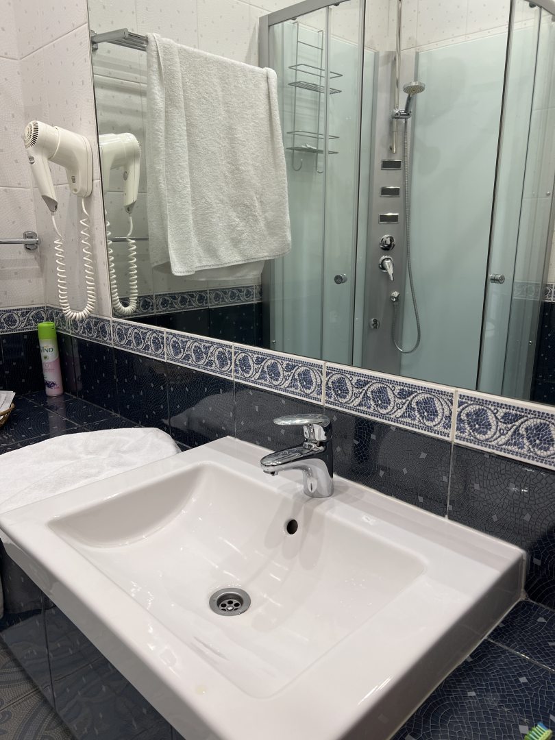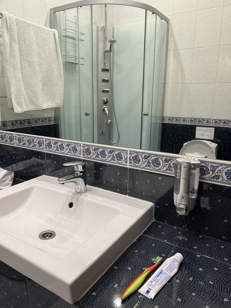 Больше всего понравилось то что отели очень чистые и комнаты огромные. Можно жить как в собственной студии. Также есть чайник. Можно делать чай в любое время дня и ночи. Предметы и мебели современные. Современная ванна. Очень новая душевая и чистая. Большое зеркало. Фен. Близость от метро позволяет добраться до него за 15 минут. Также рядом московский вокзал. Если вы путешествуете на поезде то добежать до отеля будет очень быстро особенно в холодную погоду. Выдается обогреватель. Так что вы точно не замерзнете. В общем и целом отель мне невероятно понравился. Тут есть даже вариант оставаться помесячно со скидкой. Насекомых не было. Очень отзывчивый персонал. Можно даже поболтать по душам. Можно бронировать как на одного человека так на двух. Если вы один то есть скидка. Света достаточно. Все приборы работают. Фен сушит отлично. Вода горячая. Две батареи. Питание я не заказывала. Но слышала от других что достаточно хорошее. Останавливаюсь в этом отеле не первый раз. Очень много есть постоянных гостей в отеле