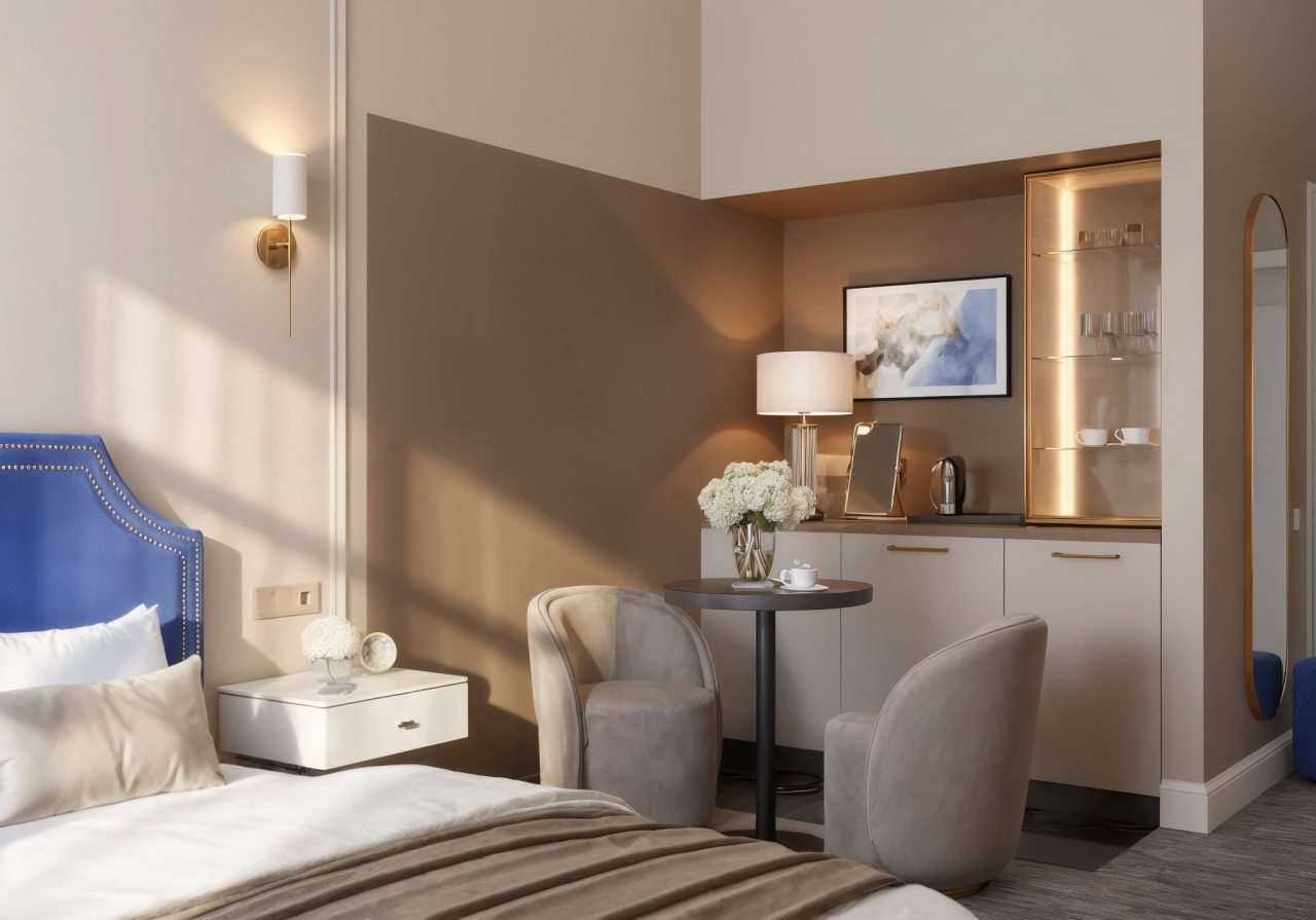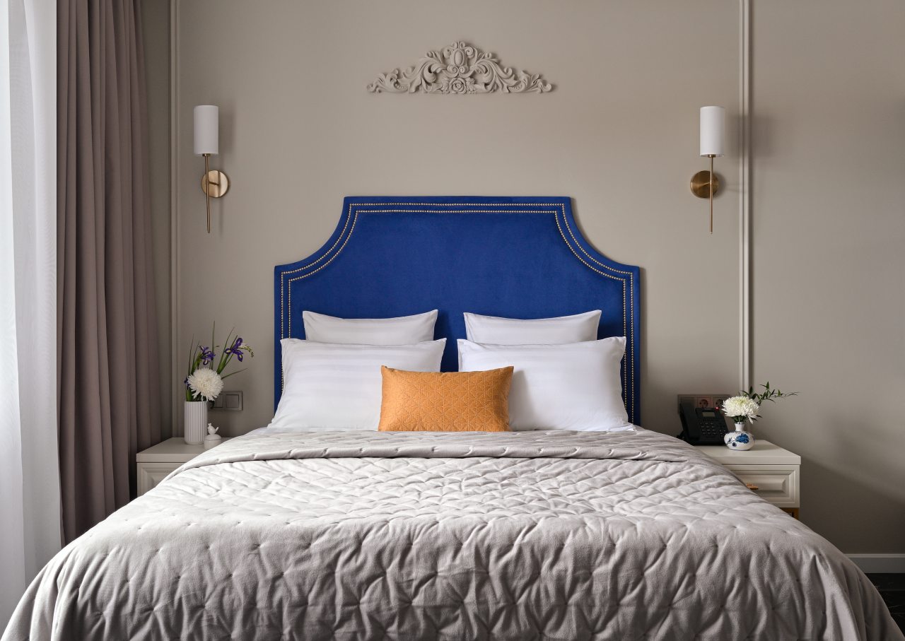 Внутреннее убранство номеров сочетает в себе благородство и утончённость, дополненные современными дизайнерскими идеями. Уникальные «Исторические Люксы» - настоящее украшение коллекции особняка. Дизайн номеров и сьютов воплощает в себе изысканный стиль неоклассики. Каждый номер является объектом культурного наследия. В каждом присутствует: King-size кровати с ортопедическими матрасами, постельное белье высшего качества, ванная комната с халатом и полотенцами, а также кондиционер, Smart TV и Wi-Fi.
