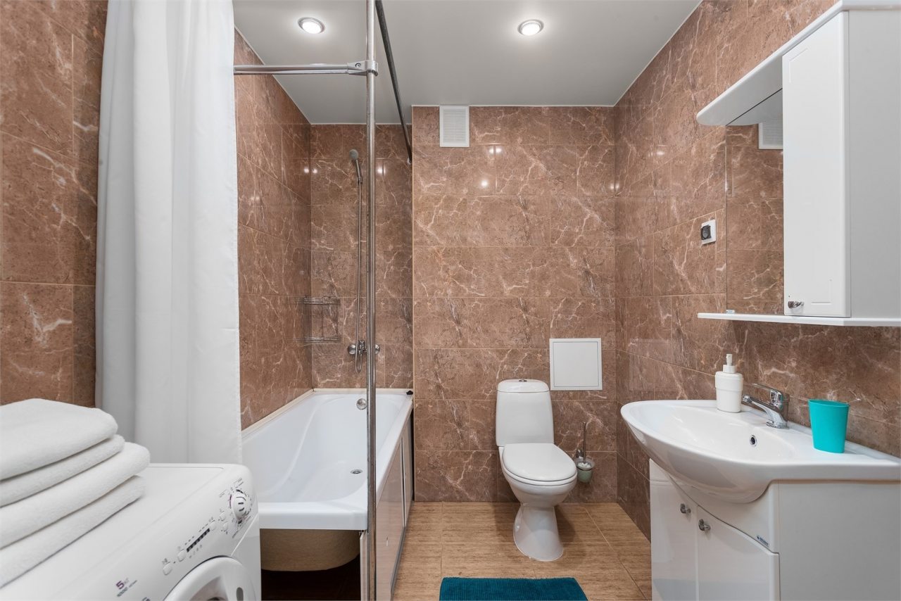 Из недостатков: немного не свежий вид коридоров, жидкое мыло в туалетной комнате надо заменить ,запах как будто машинное масло,и не мылиться вообще