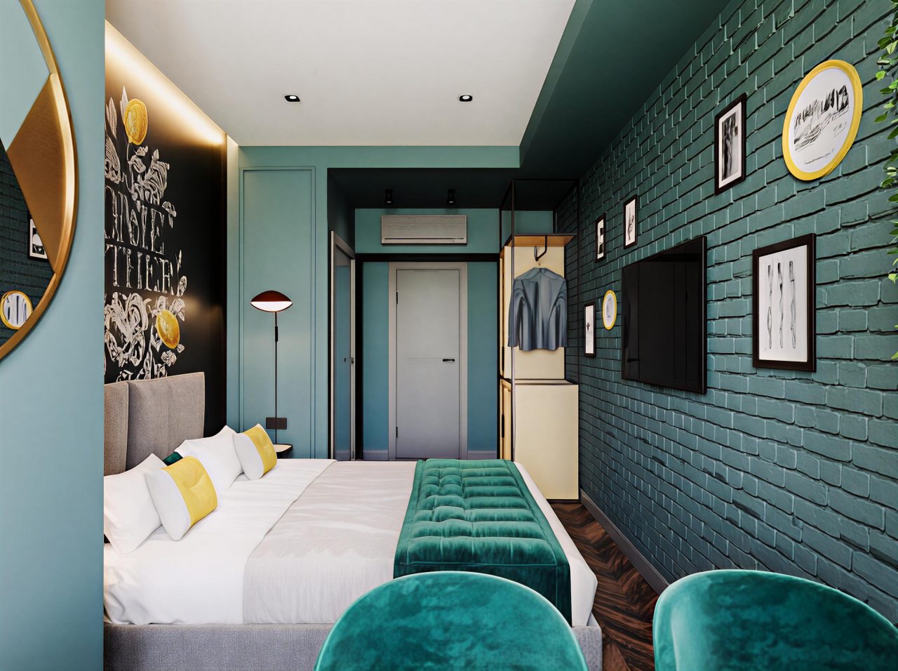 Для проживания предоставляются номера, представленные в нескольких категориях. В каждом из них выполнен ремонт в индивидуальном стиле и яркой цветовой гамме, для удобства отдыхающих есть необходимая эргономичная мебель и современная техника.
