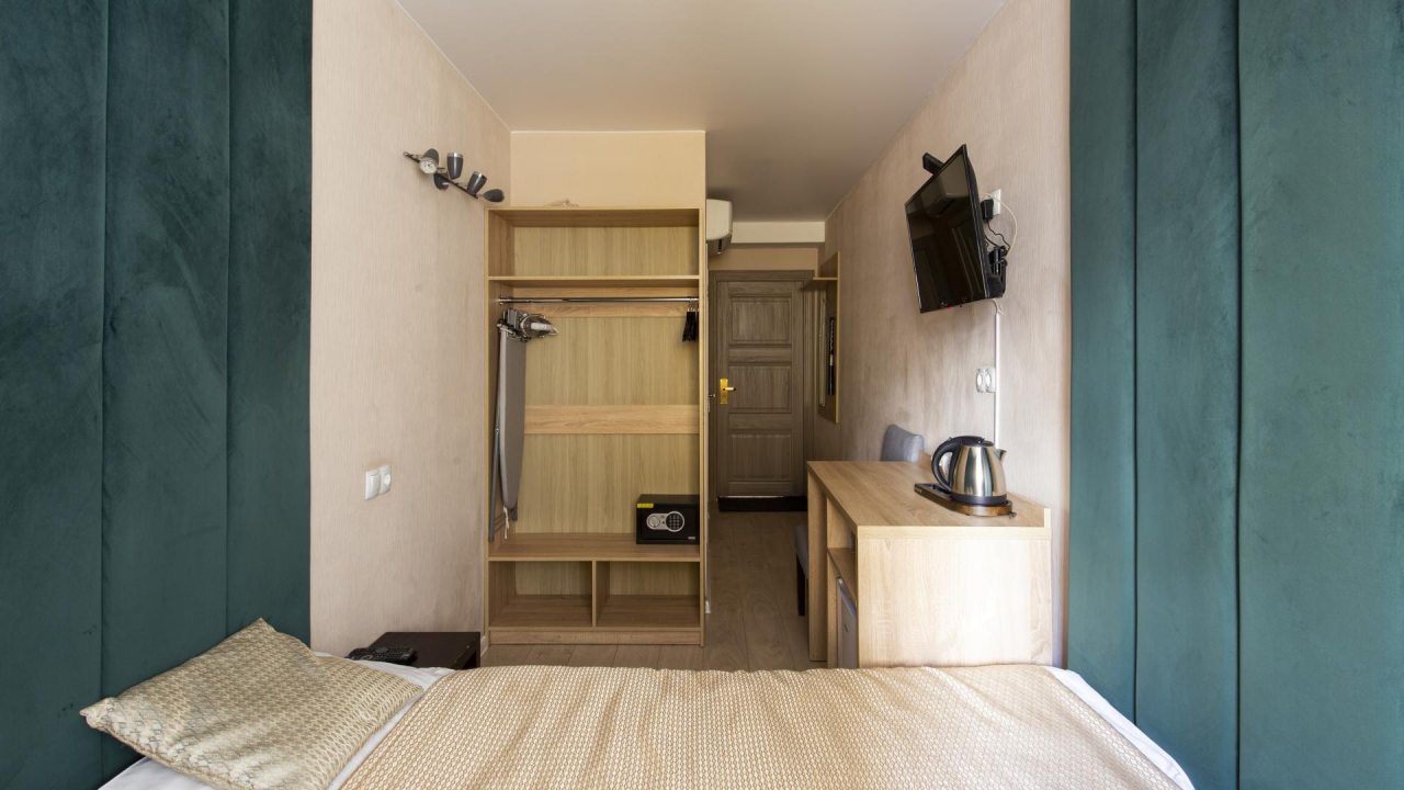 Отель отлично расположен в центре города. В номере кофеварка, чайник, чай, сахар. В ванной только одноразовый шампунь, зубных щеток нет. Сам номер чистый, полотенца, постель без нареканий. Отель состоит из двух корпусов. Предпочтительнее проживать в главном корпусе, где рецепшен. Там стены кирпичные и номера лучшего состояния.В коридоре кулер с водой, микроволновка. Отношение к гостям на высоте.