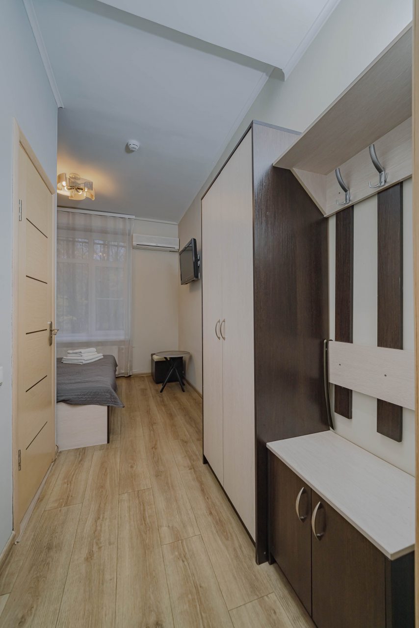 Номерной фонд разделен на несколько категорий и, независимо от выбранной, в каждой комнате все продумано до мелочей и имеется необходимый комплект мебели и техники. В ванной есть средства личной гигиены, тапочки. Регулярно проводится тщательная уборка.