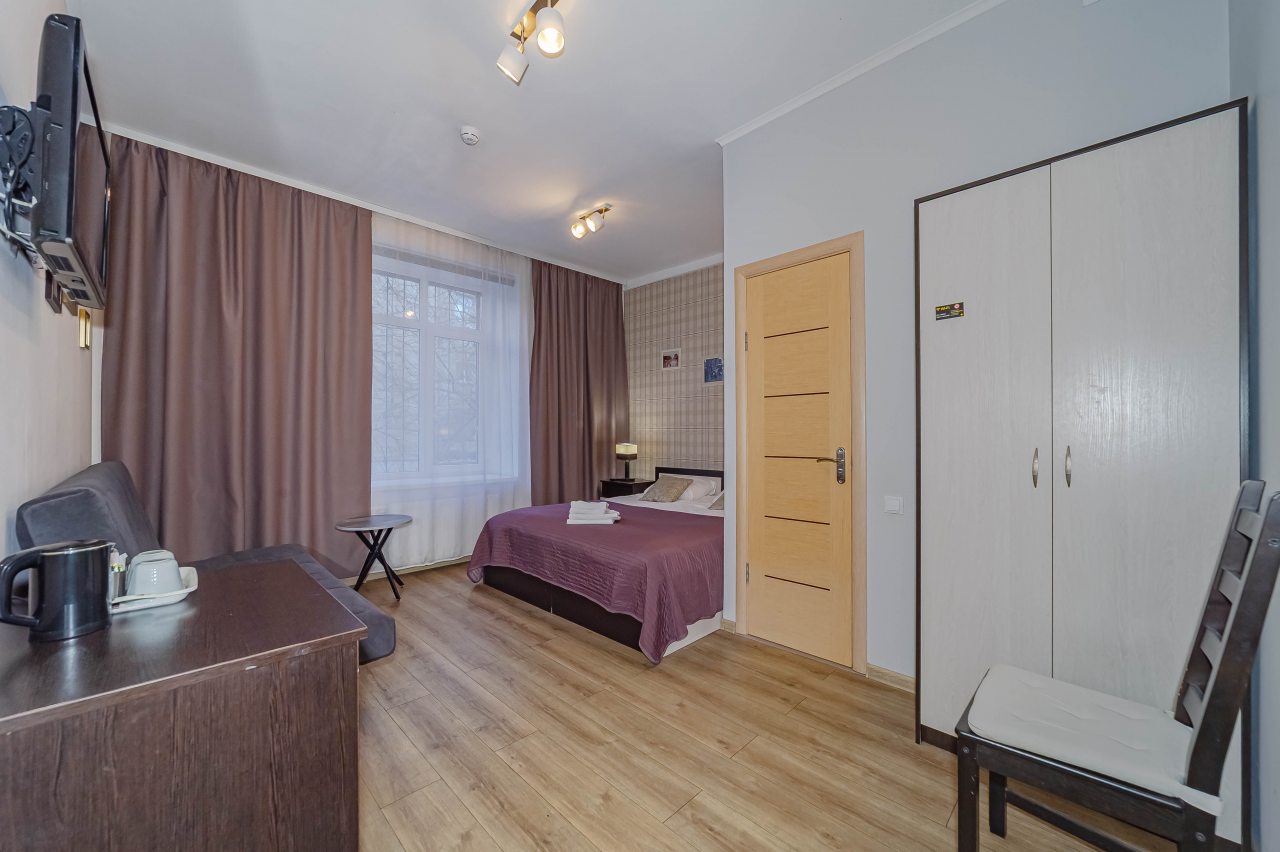 Двухместный комфортный номер мы забронировали примерно за 3 недели до визита. Обстановка в отеле понравилась, персонал приветливый, убирают здесь регулярно и хорошо. Спальное место – это больная кровать с отличным матрасом. Окна большие, в комнате светло. Звукоизоляция отличная. Свой душ и туалет в номере есть.