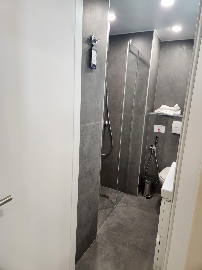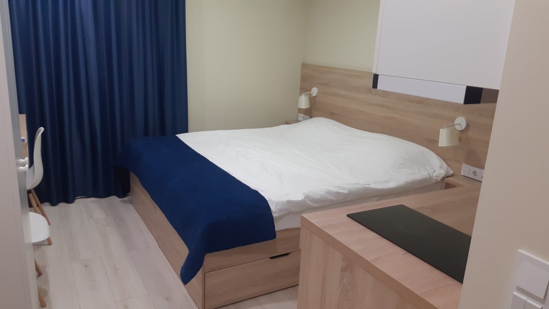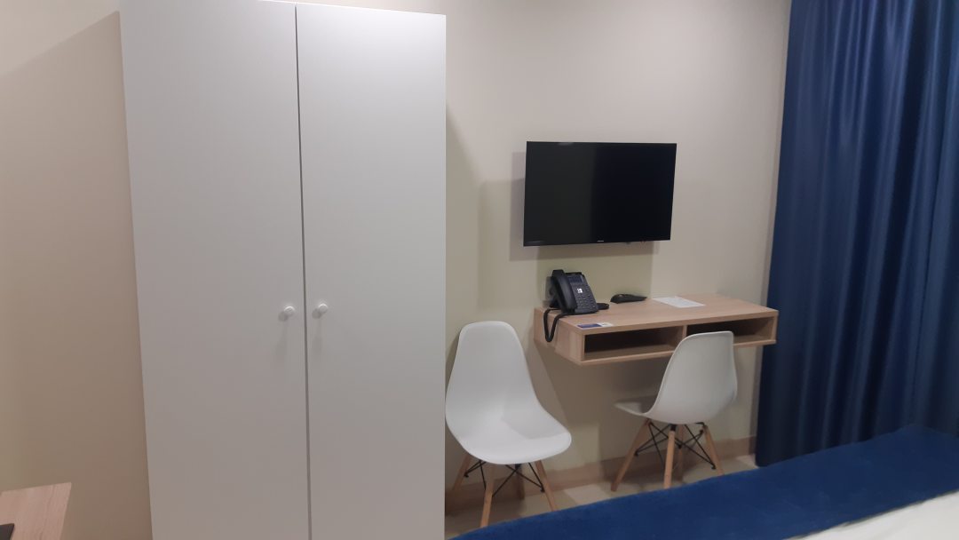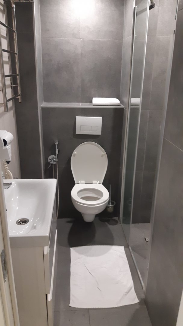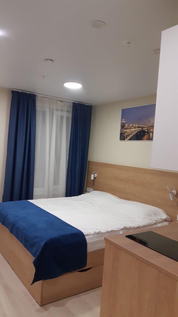 Прекрасное место, чтобы остановиться не на очень долгий срок, маленький компактный номер. В номере есть кухонька, можно что-то элементарно перекусить. Чайник, мини-холодильник. Отличный душ.