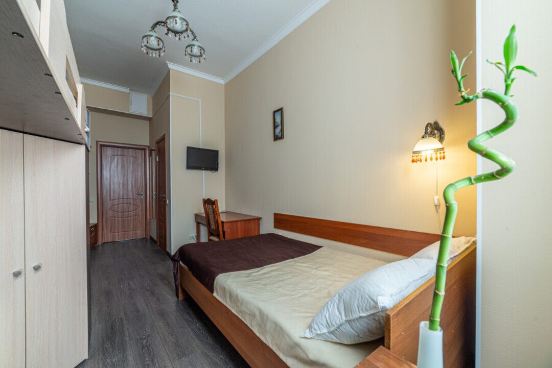 Уютные номера с ремонтом в светлых оттенках подарят гостям комфорт после долгих пеших прогулок. Внутри есть вся необходимая мебель, телевизор, Wi-Fi, гладильные принадлежности, собственная ванная комната.