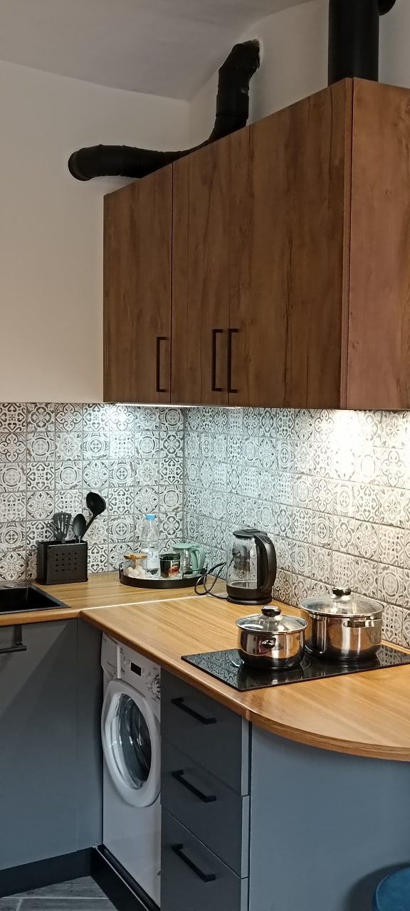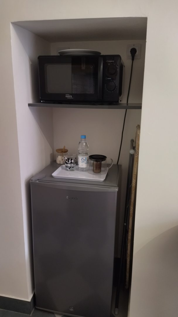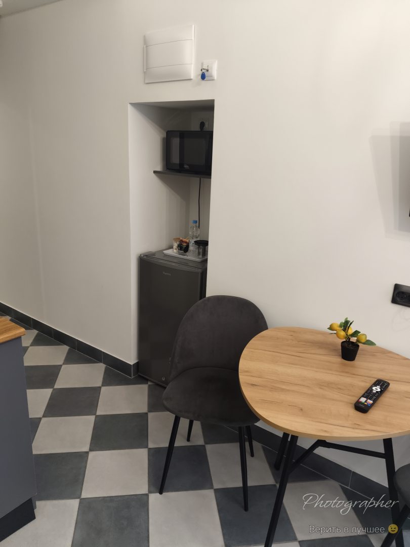 Отель удобно расположен, рядом пятёрочка, пекарня и кафе на любой вкус. Номер с современным интерьером, свежая сантехника, есть небольшая кухня, утюг и даже стиральная машинка.