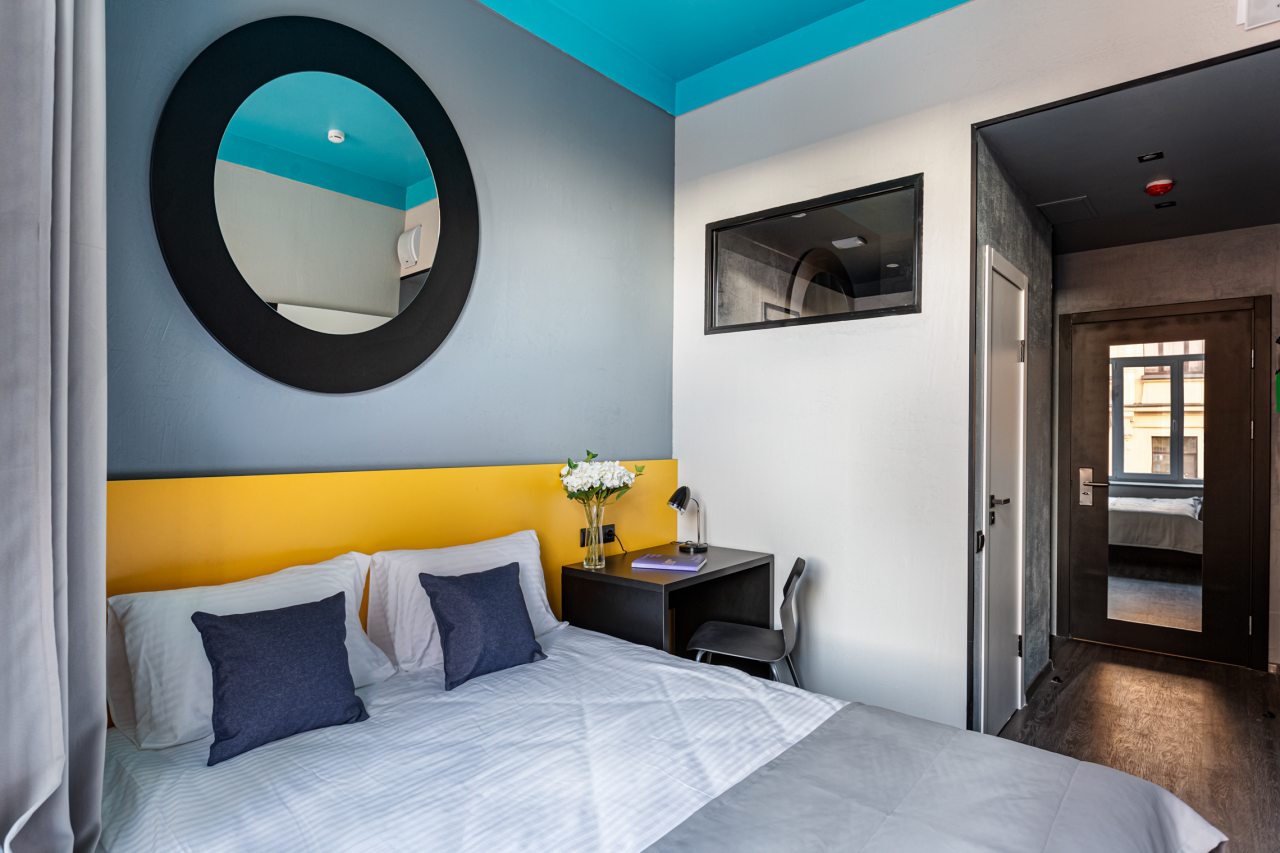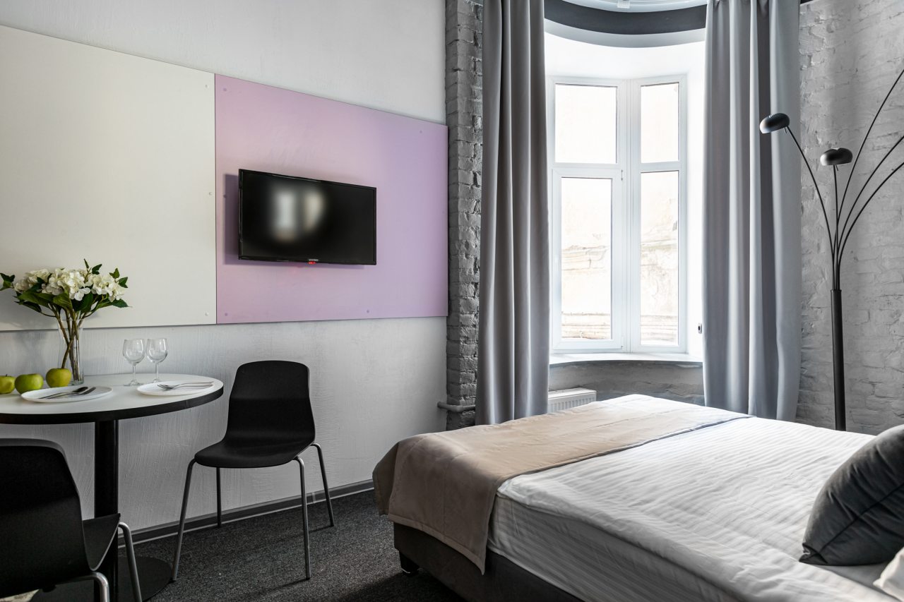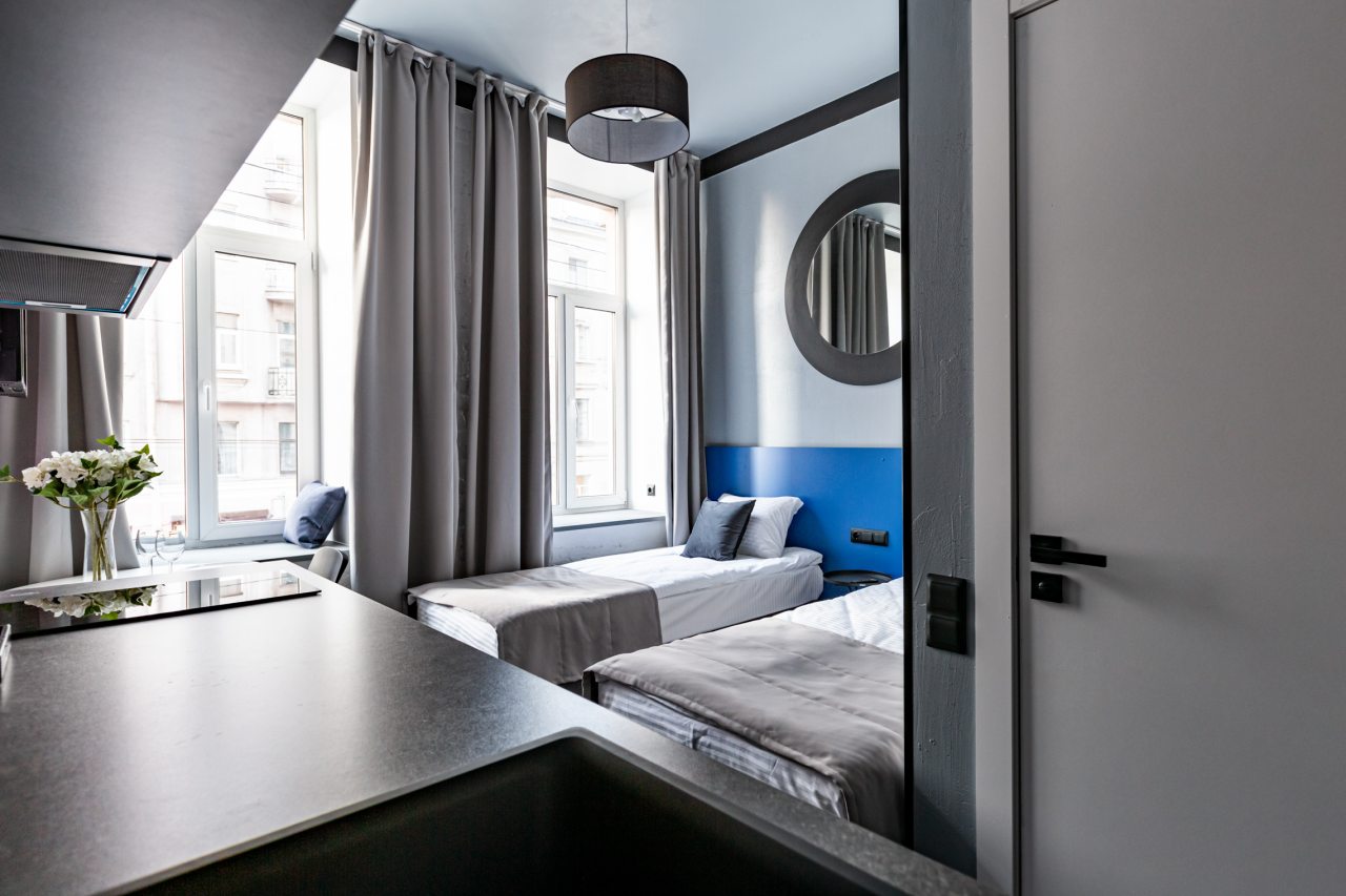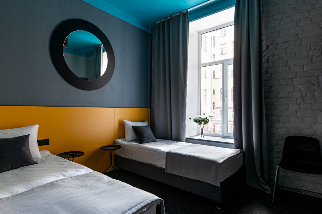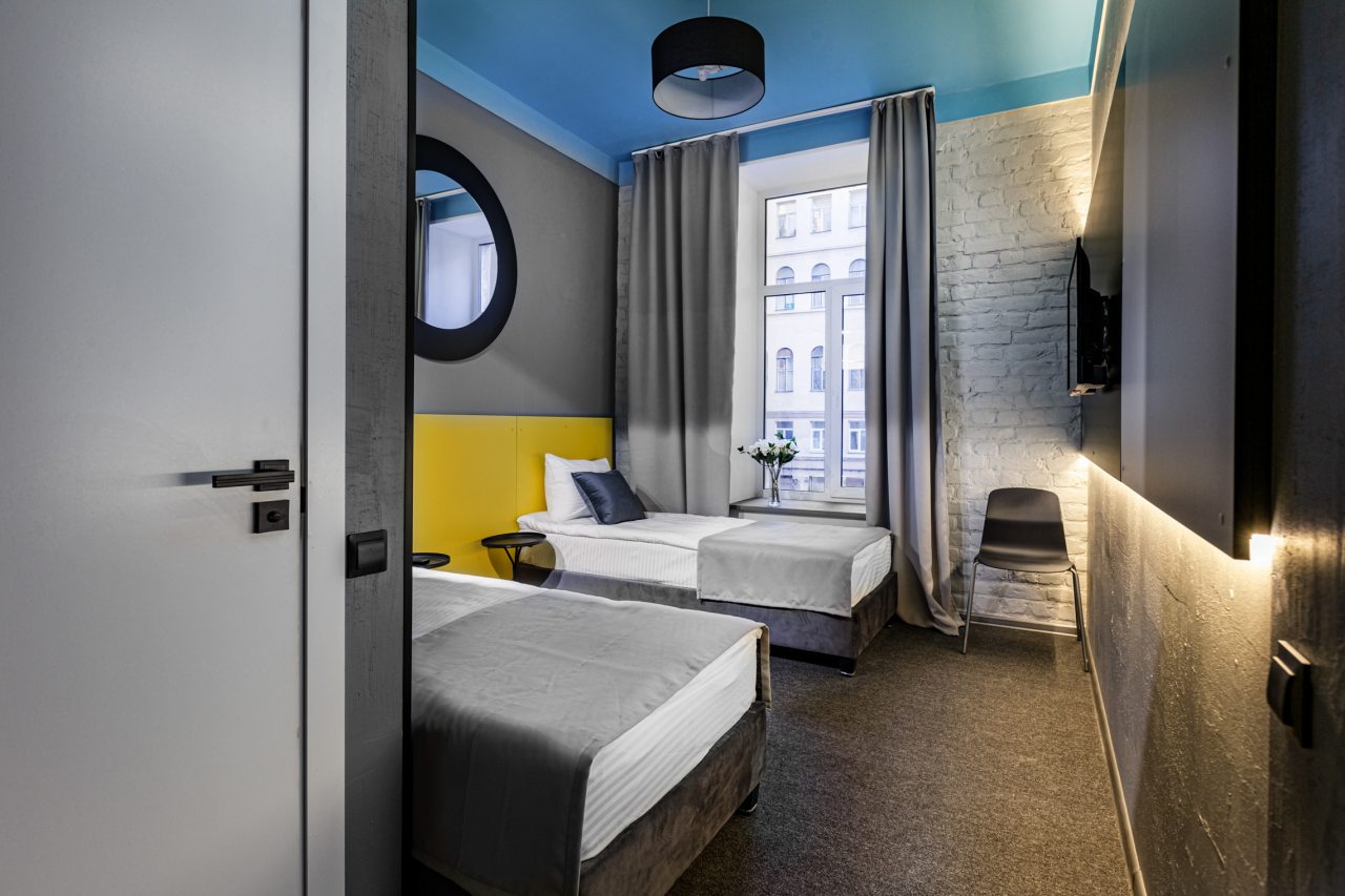 само здание расположено на лермонтовском проспекте и является историческим, было приятно туда заселяться - номера оформлены красиво, подсветка кровати очень понравилась) вход по ключ-карте, домофон по паролю, удобно