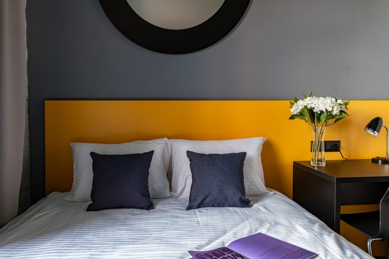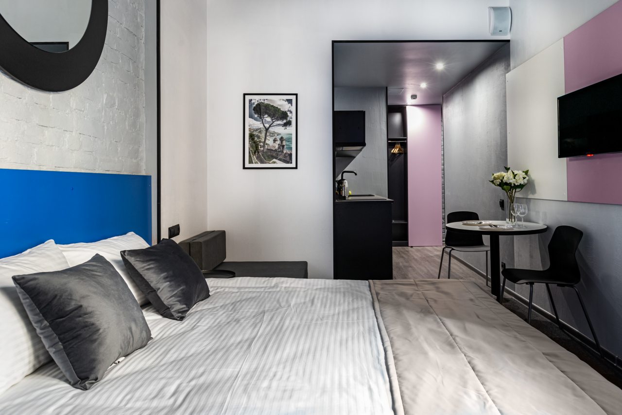 Отель располагается рядом с остановкой от которой можно доехать до всех достопримечательностей города, прям в доме есть кафе (не очень вкусно) и магазин Дикси. В 15 минутах ходьбы Метро. С парковками беда, машину оставляли далеко, но это не критично. Качественный матрас и все белье, чистота и порядок в номерах. Отель очень понравился, слышимость минимальная, спать можно.