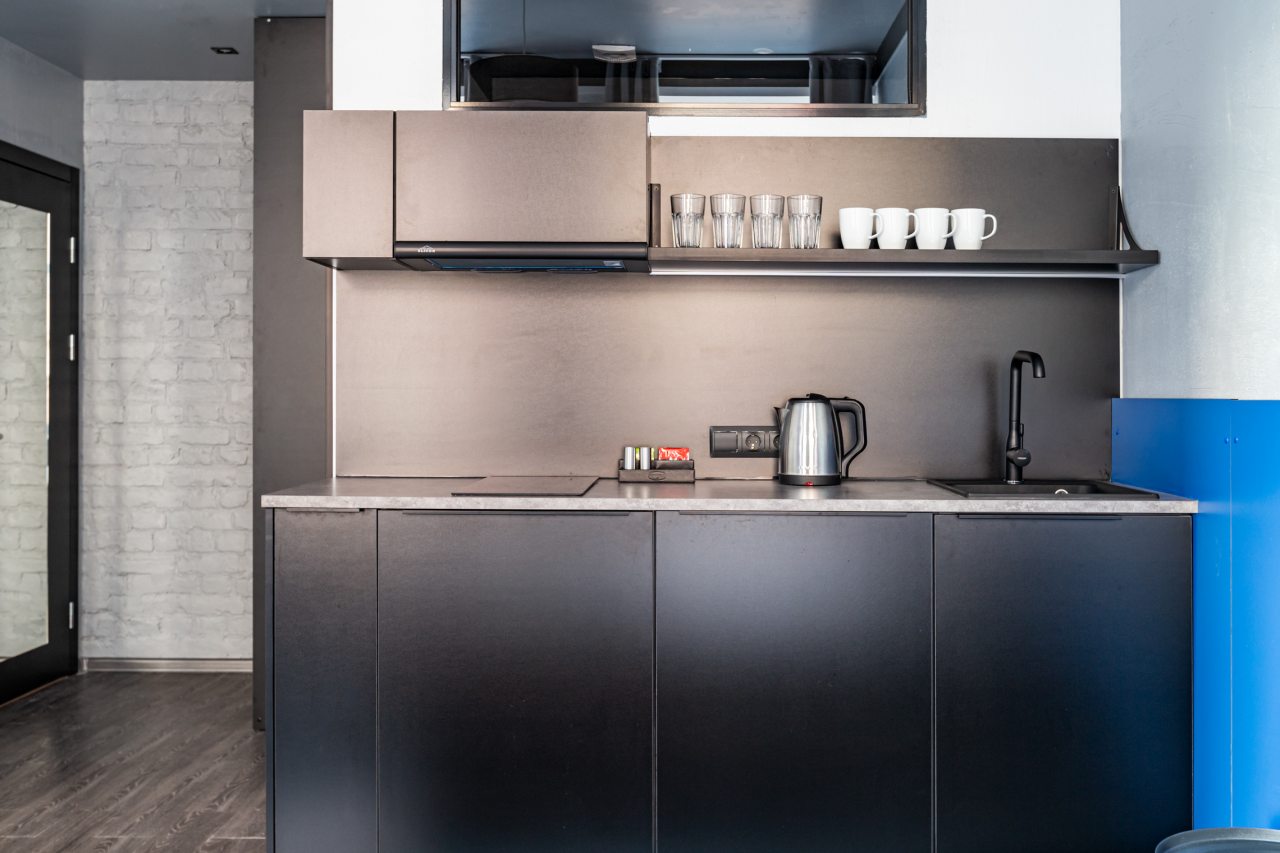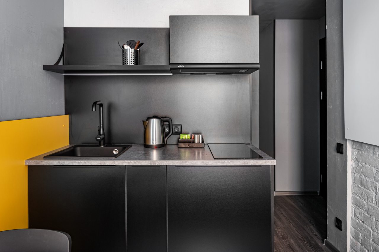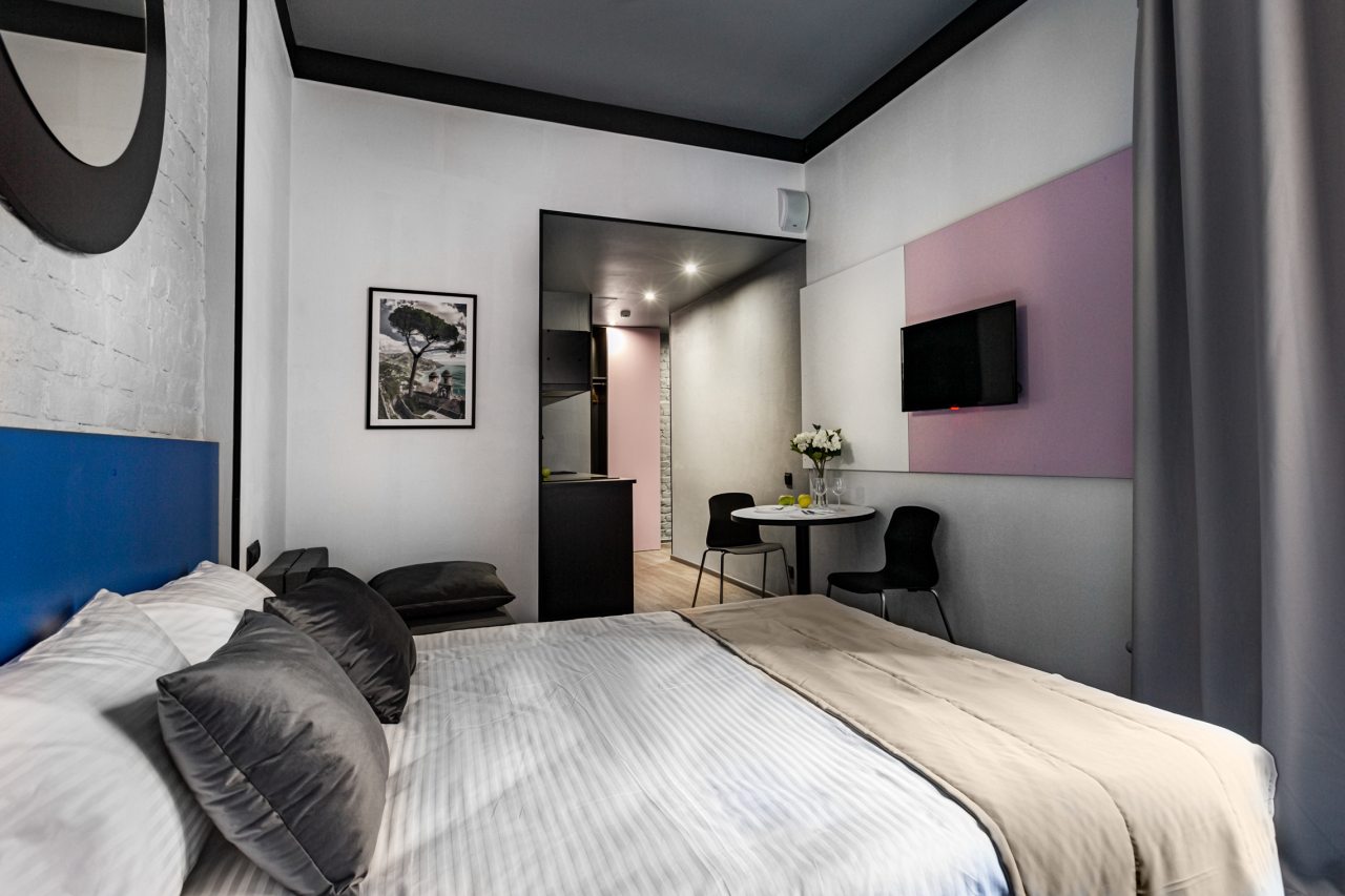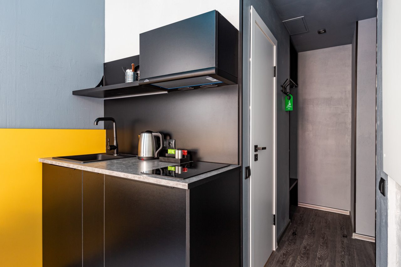 Часть номеров оборудована кухней, что позволяет чувствовать себя в гостинице как дома. Категория студия располагает полностью оборудованными зонами с современными бытовыми приборами. В окрестностях расположено множество заведений с разнообразной кухней, где можно вкусно поесть.