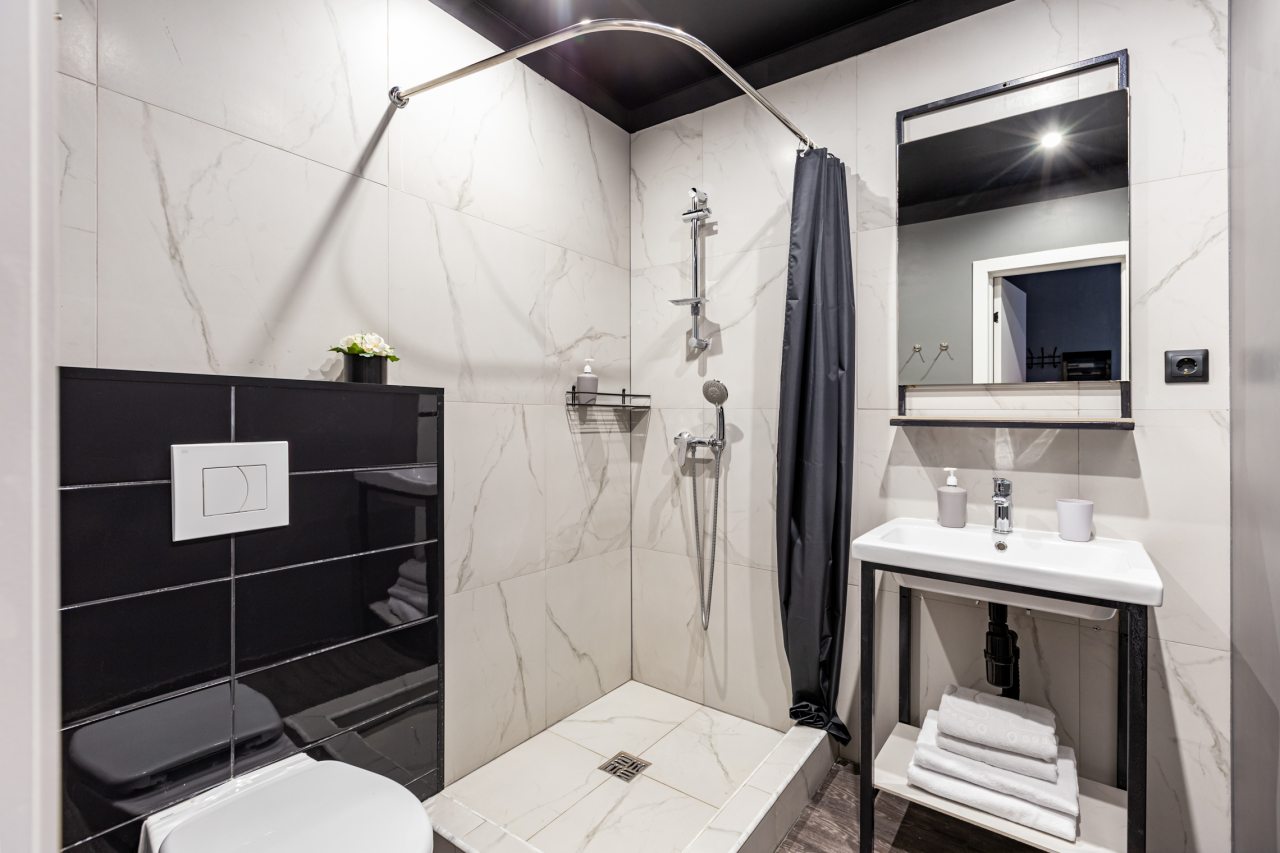хорошая индивидуальная ванная комната, все работает и выглядит красиво