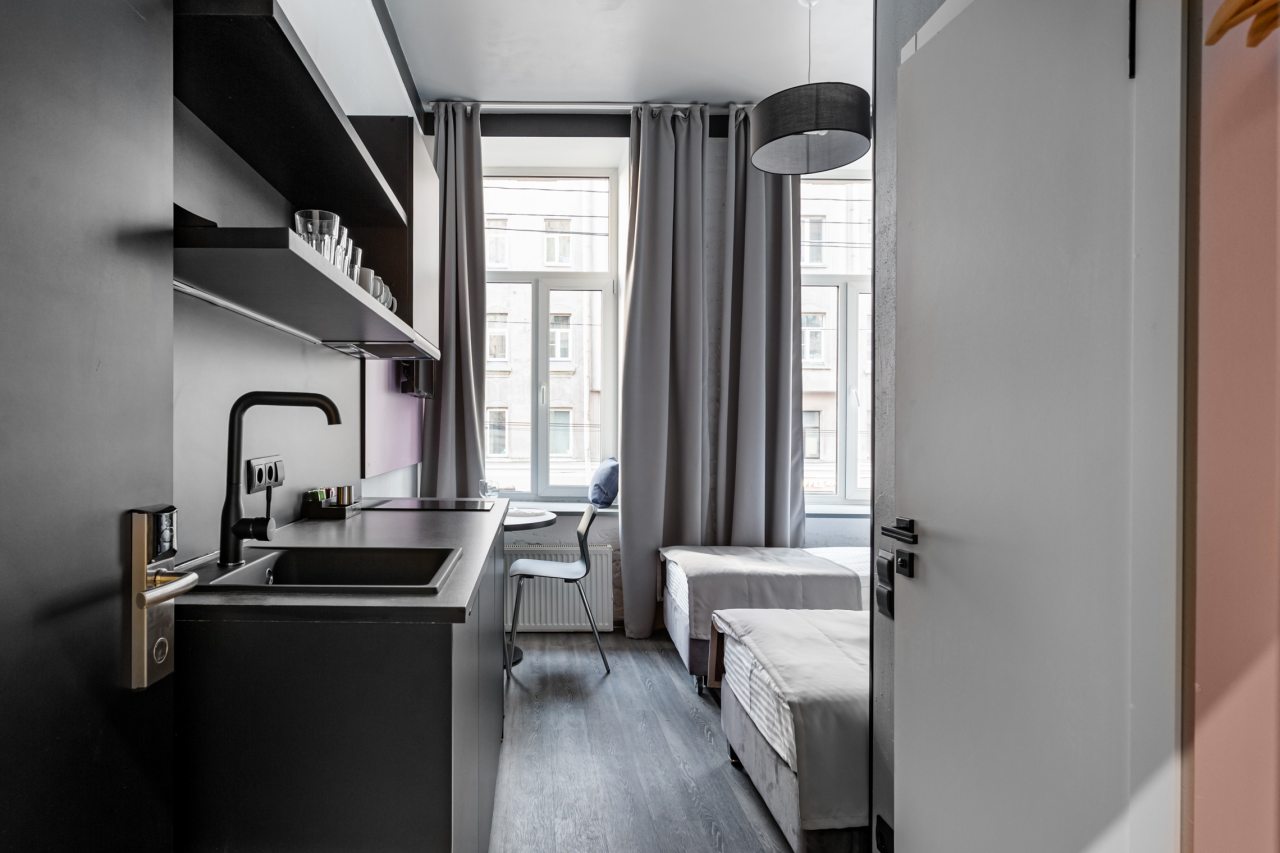 Из недостатков: отсутствие кондиционера.... Я знаю что в Санкт-Петербурге редко жара, но мне повезло ей наслаждаться... уже 5 дней как мы заехали и все это время порядка 30 на улице... в комнате можно умереть. хоть и не солнечная сторона и работает вентилятор... не спасает...