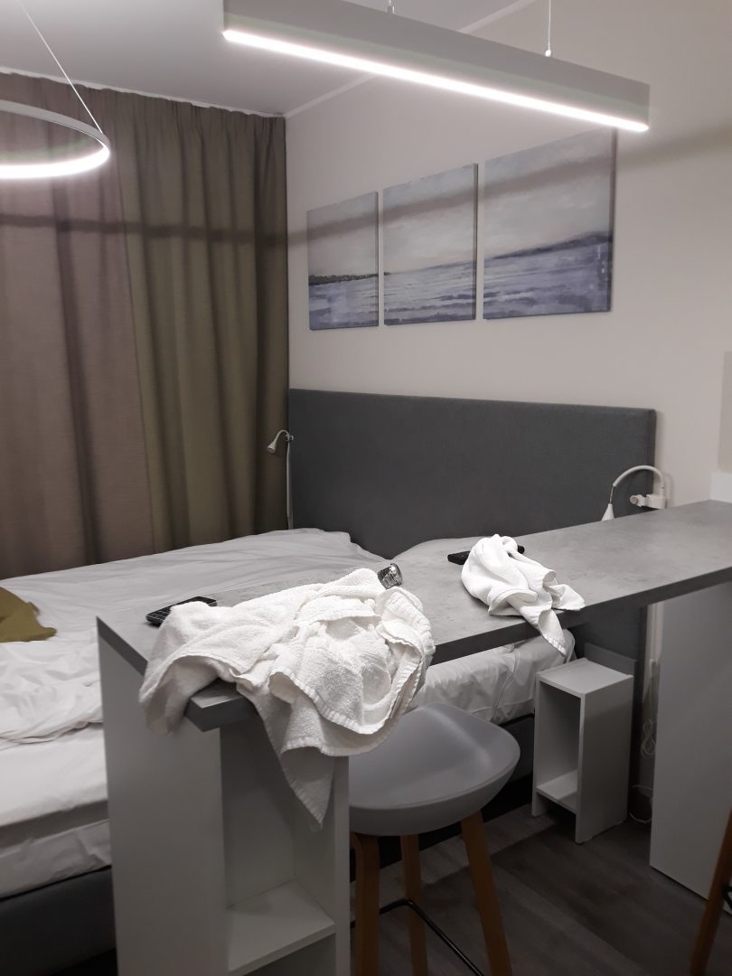 Отличный номер, есть все, что нужно. Уборка у нас была каждые пару дней. Прямо в здании есть кофейня, если не хочется есть там - в пяти-десяти минутах перекресток и ТЦ с кафешками и даже знаменитыми пышками. Метро сразу на выходе из здания, до Невского проспекта ехать около 20-30 минут.