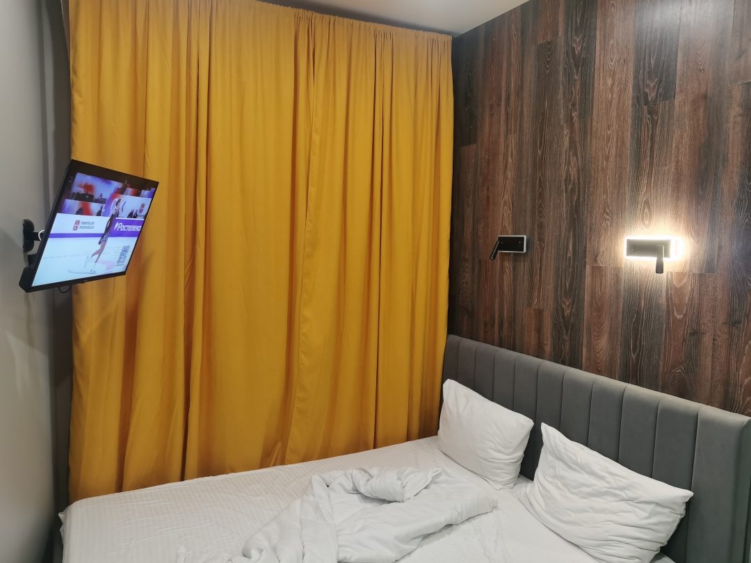 Заселиться предлагается в двухместные номера с современным и стильным интерьером. В шкаф, стоящий внутри комнаты, можно разместить личные вещи. В санузле с душевой кабиной установлен водонагреватель для избежания проблемы отключения горячей воды. Wi-Fi позволит оставаться на связи с близкими, читать новости или выкладывать новые фотографии. Посмотреть любимые программы и фильмы можно на телевизоре. Гладильные принадлежности представлены на этаже для удобства отдыхающих.