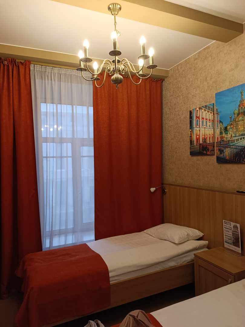 Рядом с Московским вокзалом. На третьем этаже,есть лифт. Уютный небольшой отельчик, но просторный. В номере кондиционер, TV, сейф, шкаф для одежды, плечики. В ванной жидкое мыло и набор шампуней. В номере тепло.