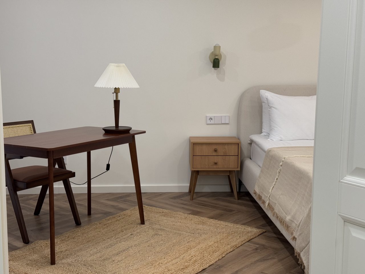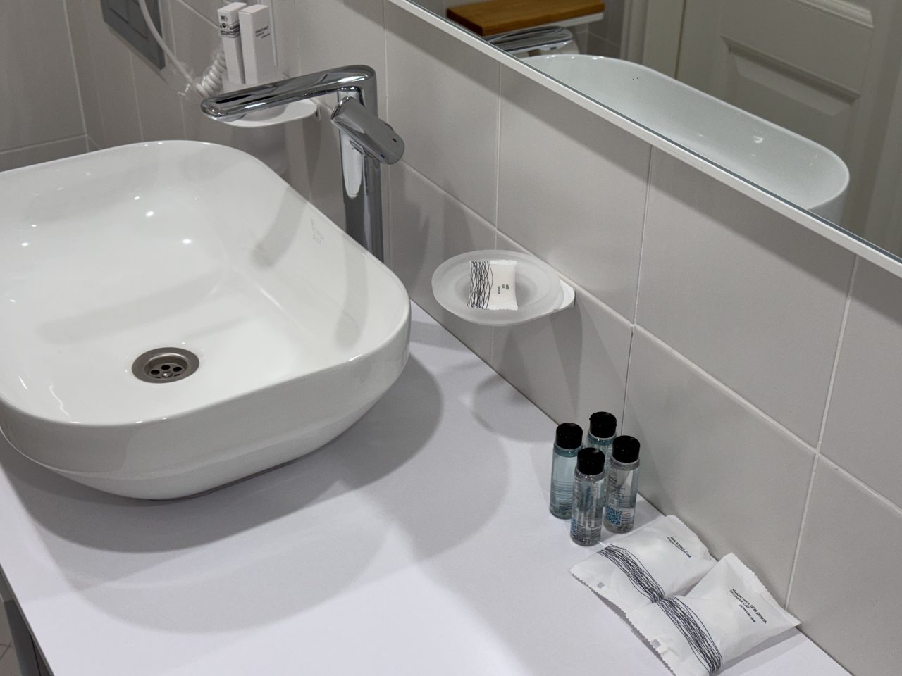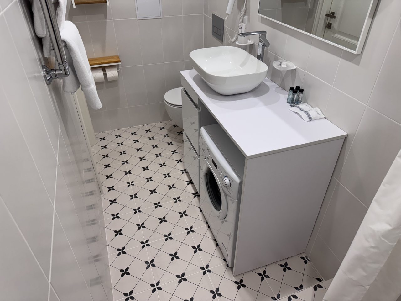 Отличный новый отель. Идеальное расположение, находится во дворе, тихо. Номера еще пахнут новой мебелью, белейшее постельное белье. Ванная комната чистая, светлая. Ощущение, что до тебя в этом номере еще никто не жил. Сам номер небольшой, но есть всё необходимое. Достаточное количество розеток.